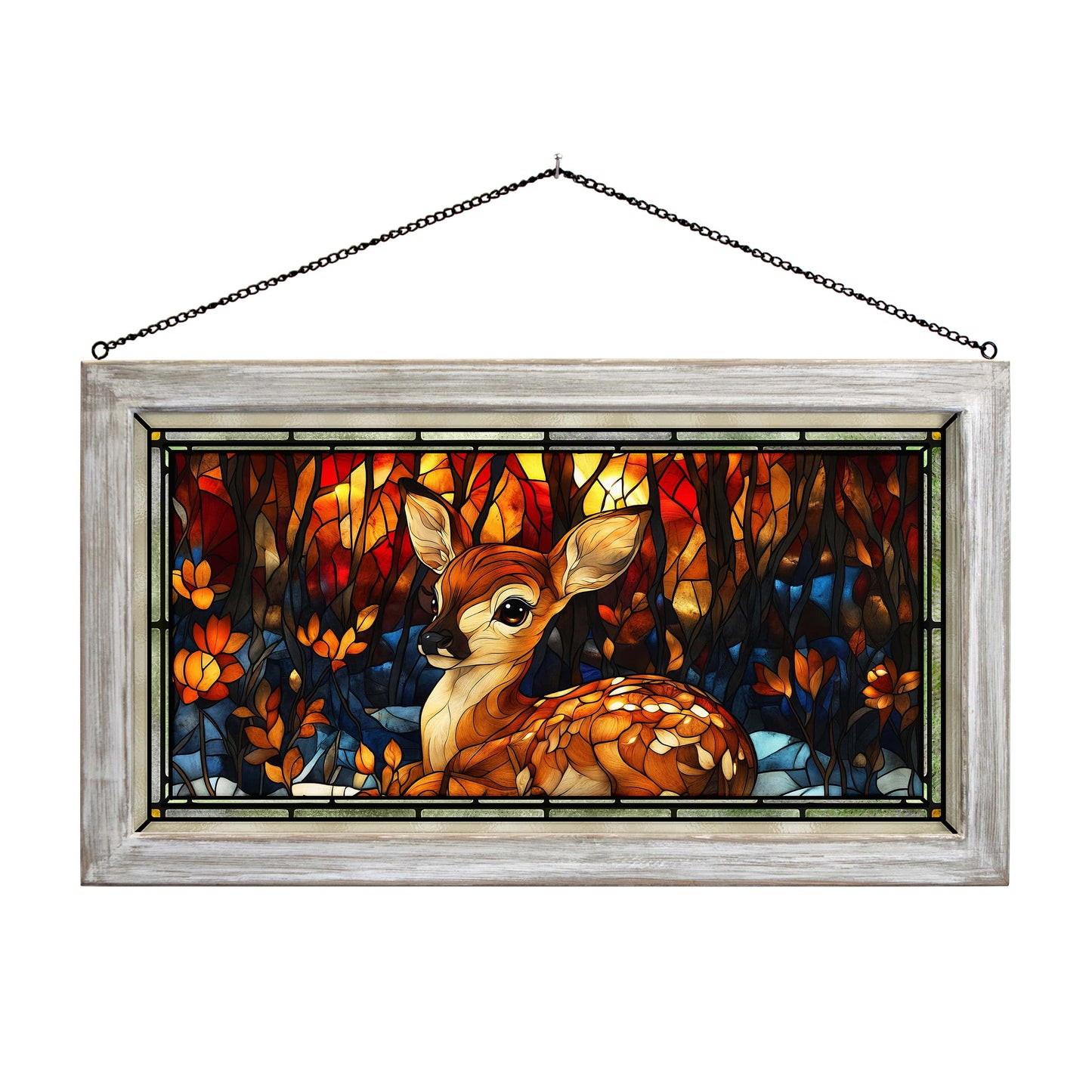 Doe-eyed at Daybreak - 13" x 23" Stained Glass Art