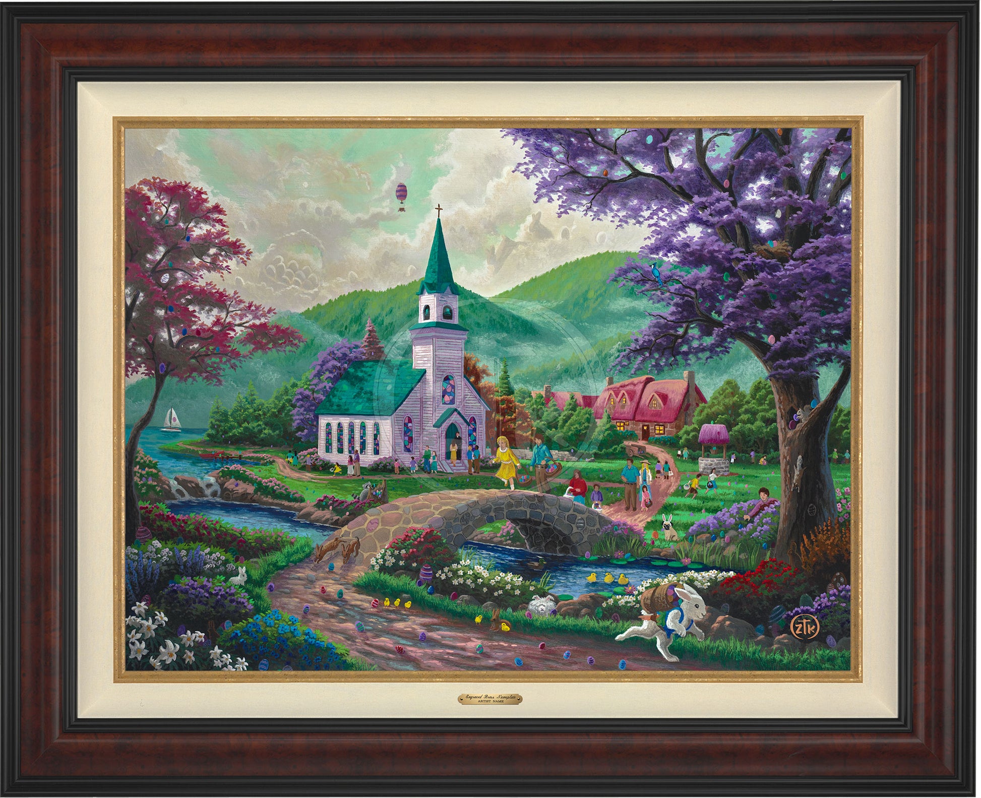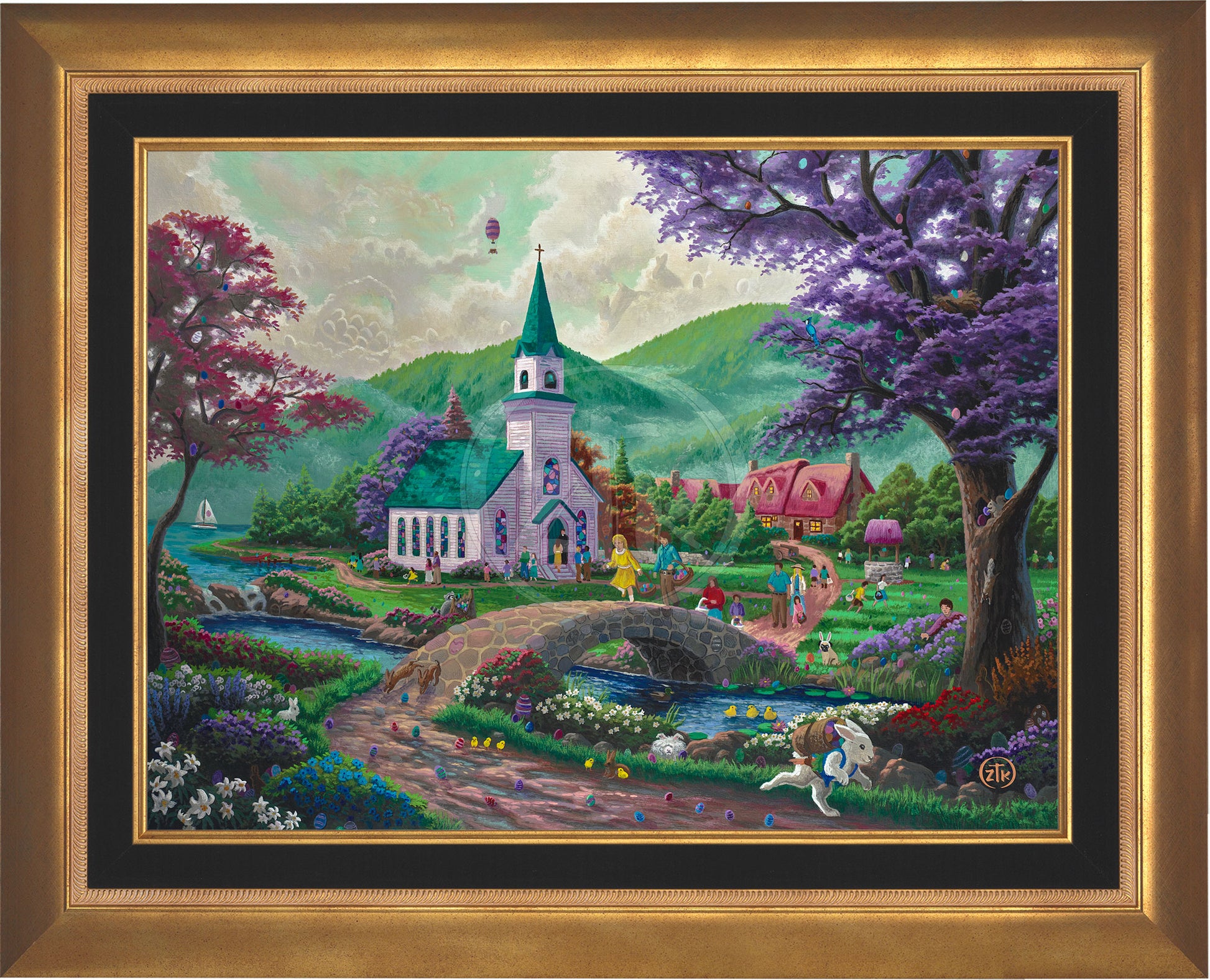 The joy of a holiday and its celebration can take many forms. Easter, for example is a time of the Passion Play and reverence for the hoped-for reclamation of the human spirit. But it is also a time of good-natured fun and child-like belief in magic. In my most recent work “Easter Sunday,” I try and capture both cultural traditions. A small country church sits in a meadow where a community of the faithful has just let out; a morning of song and sermon well spent. Colored eggs are hidden for the children to hunt as the Easter Bunny scampers away. Have fun trying to find all 208 colored eggs I have hid in the landscape for your enjoyment. There are many Easter traditions, both sacred and silly. My hope is that you rejoice in all of them. And, as always, thank you for sharing my adventure in art!