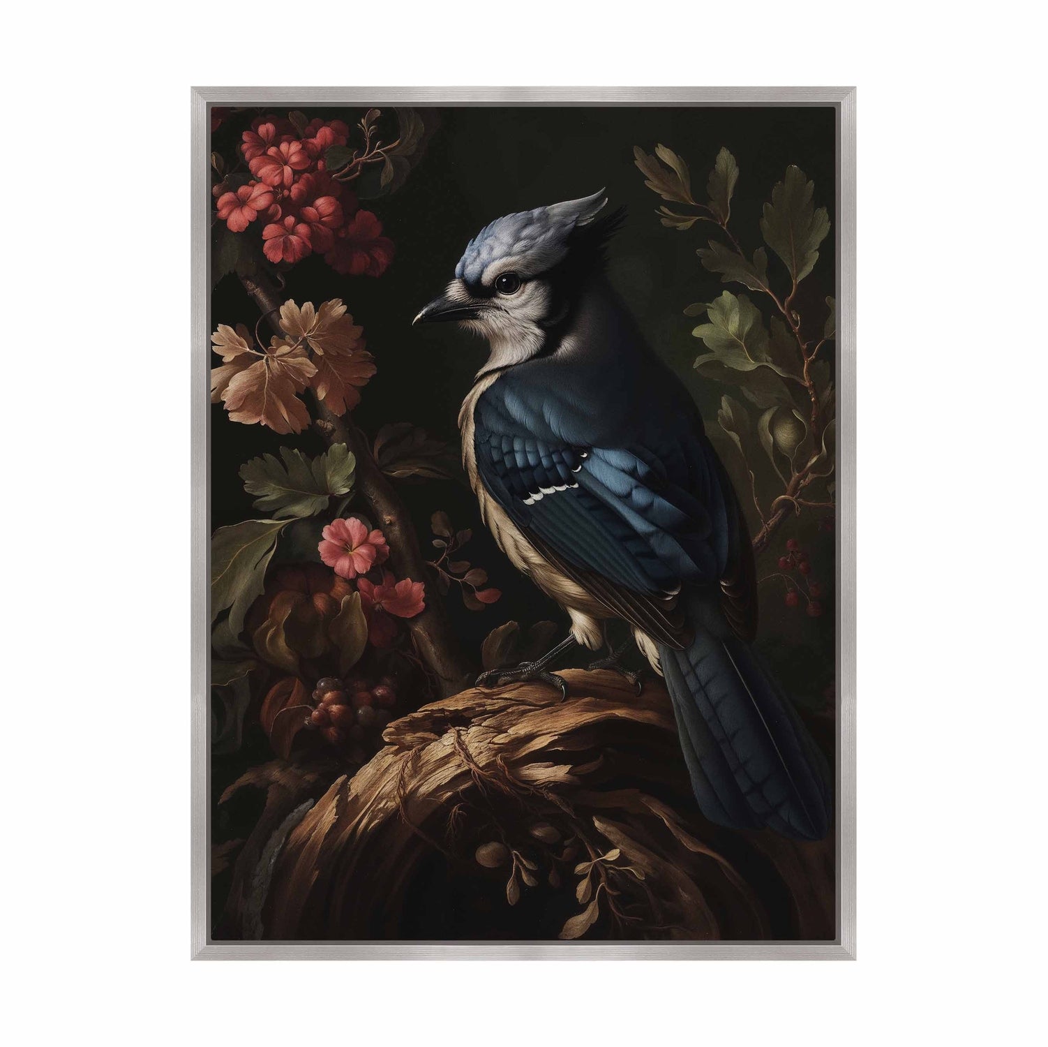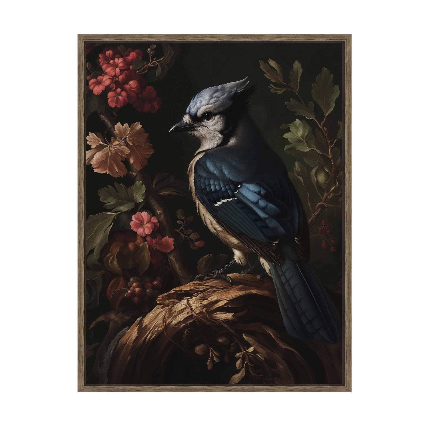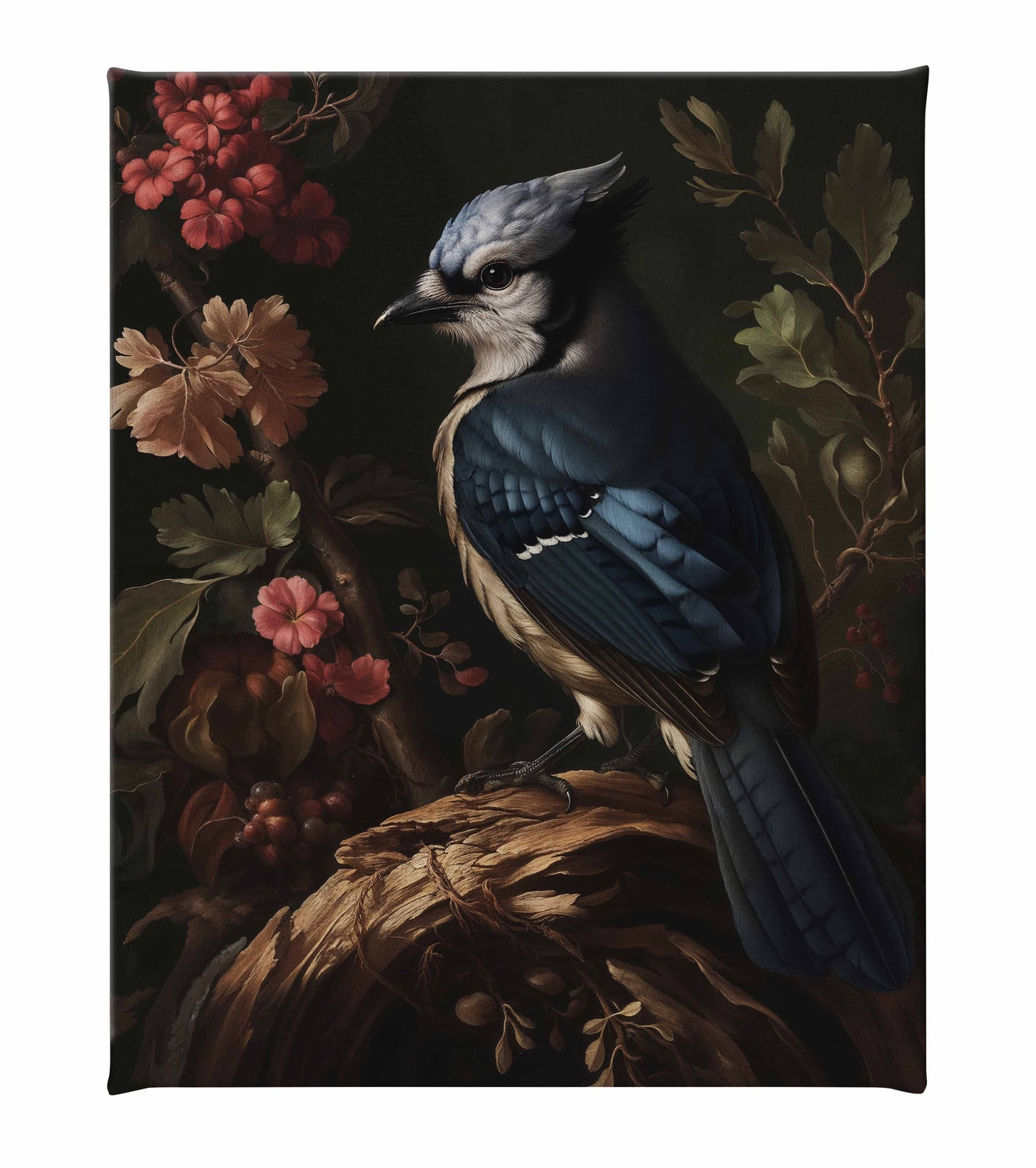 In Elegance in Bloom - Blue Jay Amongst Flora, the artist captures the serene beauty and delicate balance of nature. This painting features a striking Blue Jay, perched gracefully amidst a rich tapestry of flowers and foliage, reminiscent of the Dutch Floral still-life tradition. The Blue Jay's vibrant blue plumage stands in stark contrast to the warm, earthy tones of the surrounding flora, creating a captivating visual harmony. The meticulous detailing of each petal and feather, combined with the soft play of light and shadow, brings an almost three-dimensional quality to the work. This piece not only celebrates the intricate beauty of the natural world but also evokes a sense of timeless elegance and tranquility. Ideal for collectors and nature enthusiasts alike, Elegance in Bloom: Blue Jay Amongst Flora is a testament to the enduring allure of classic floral art.