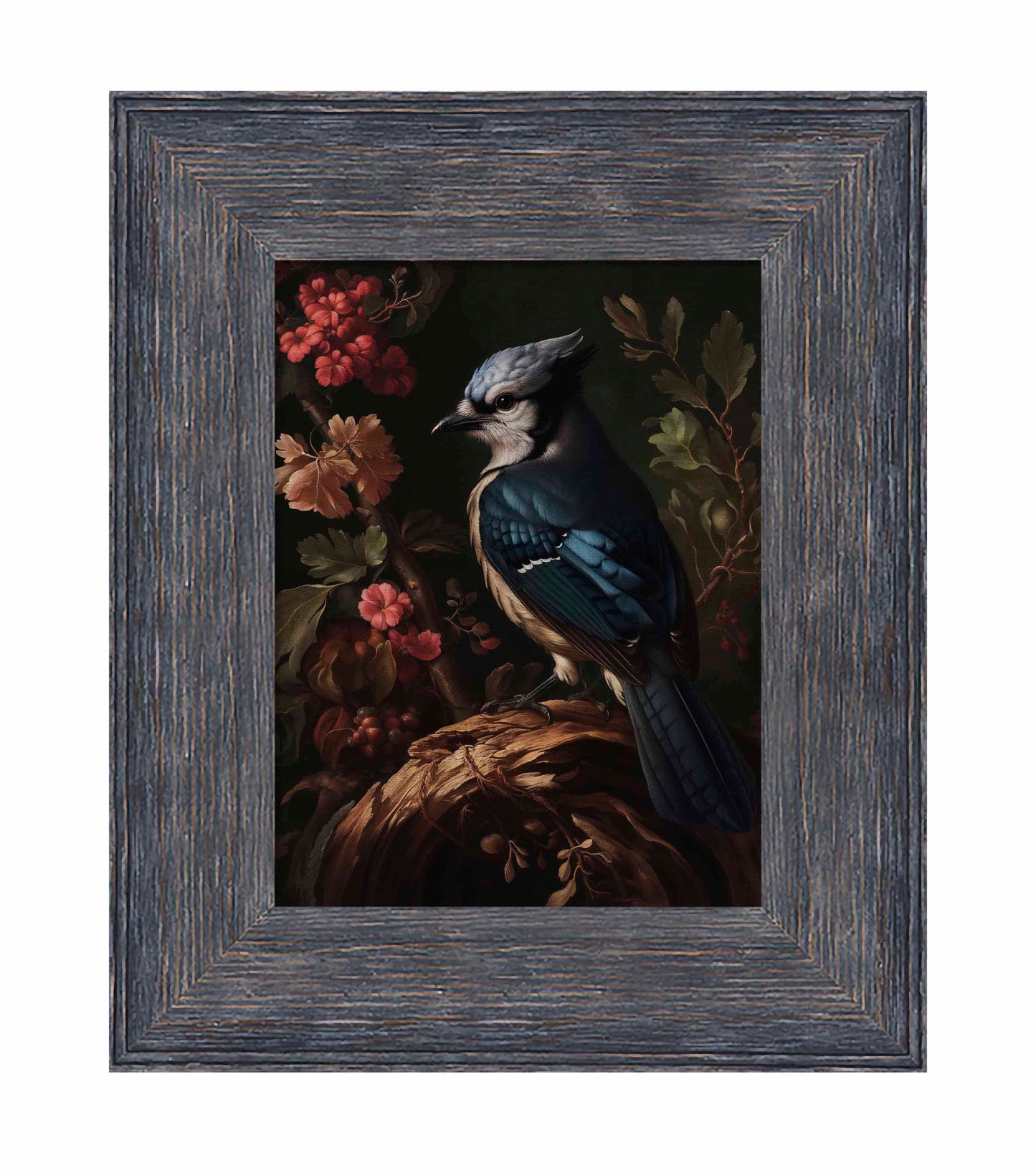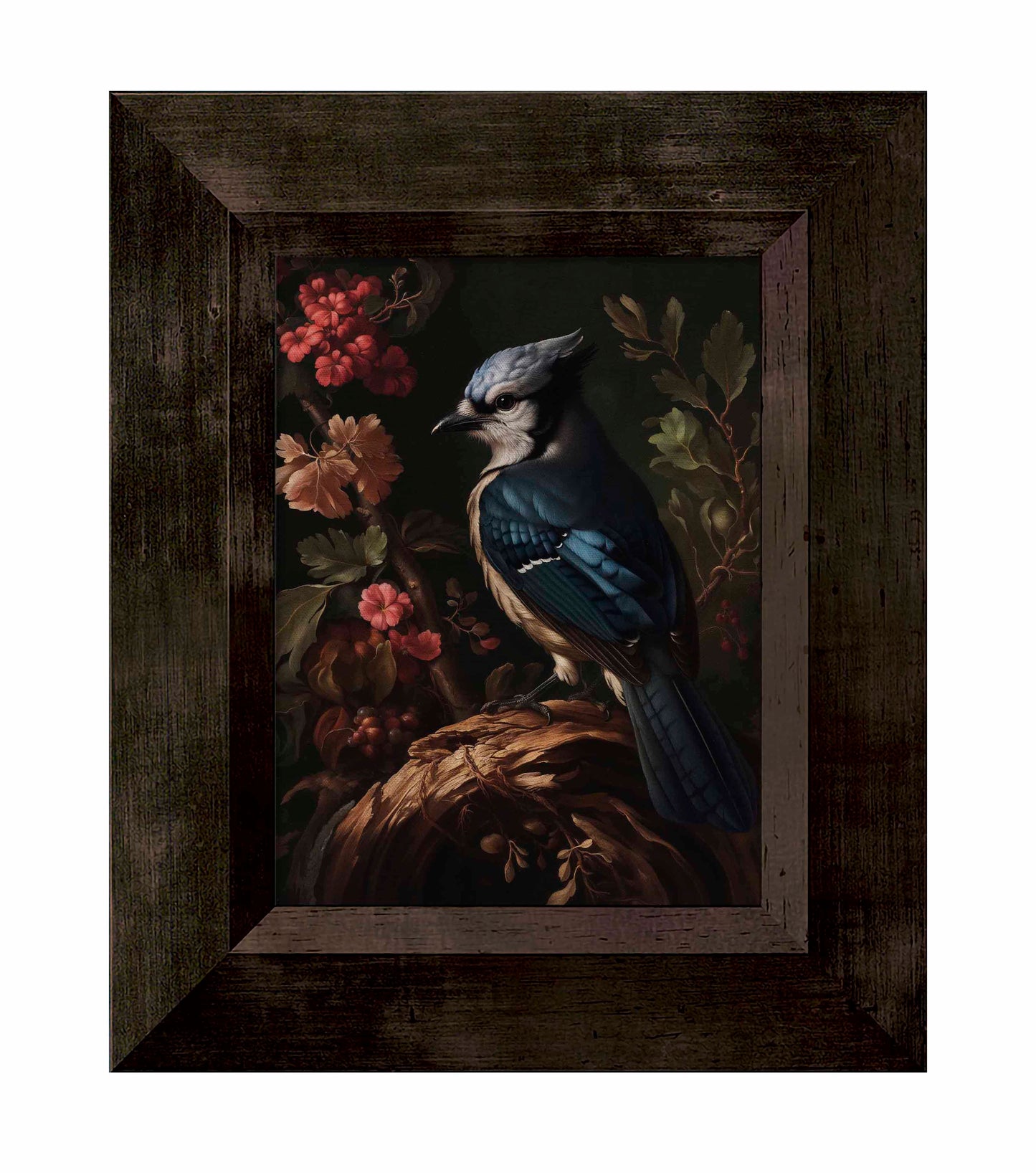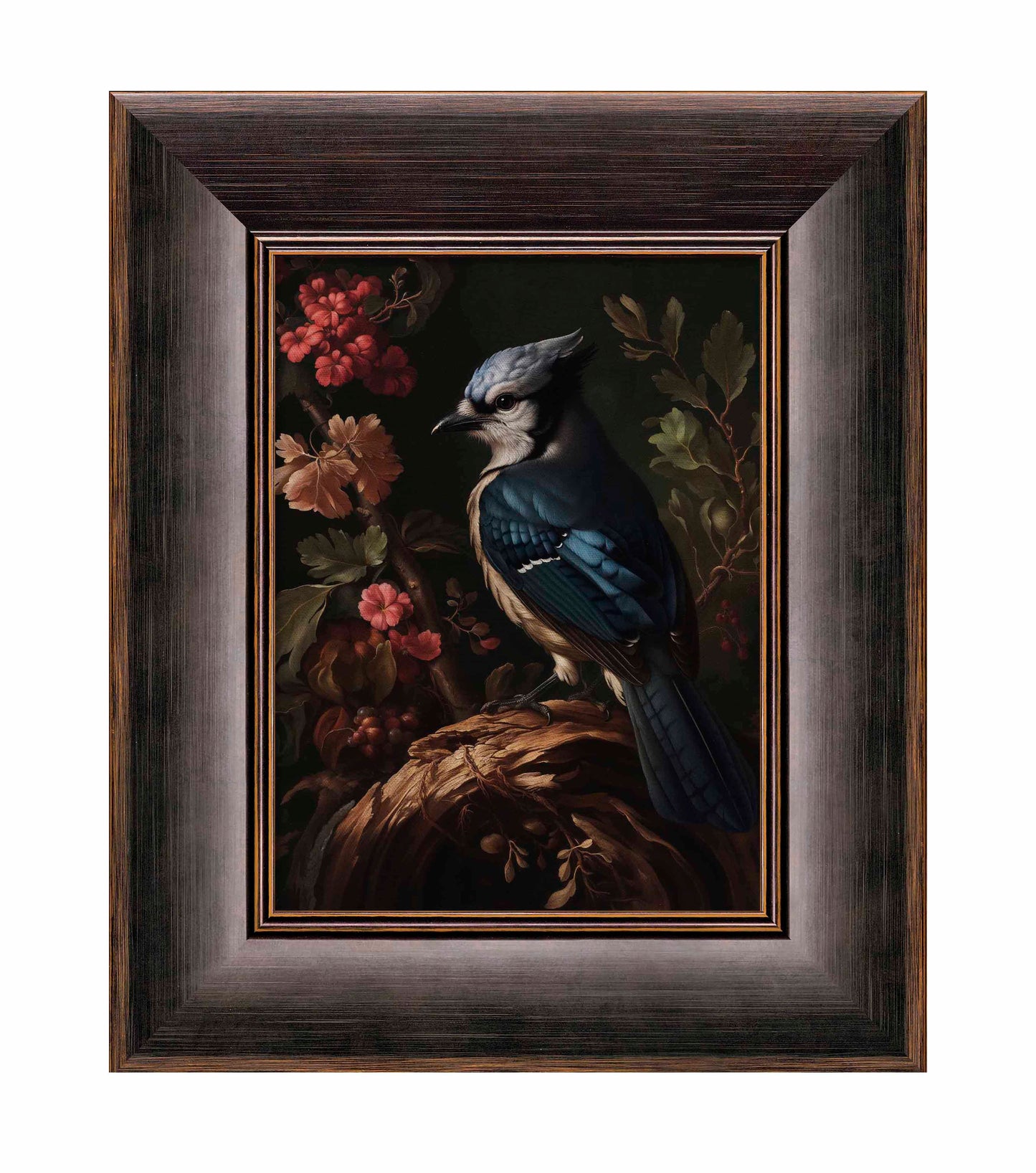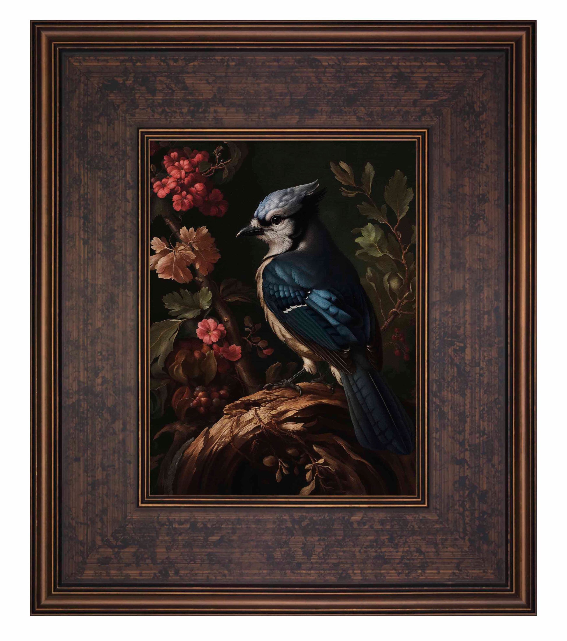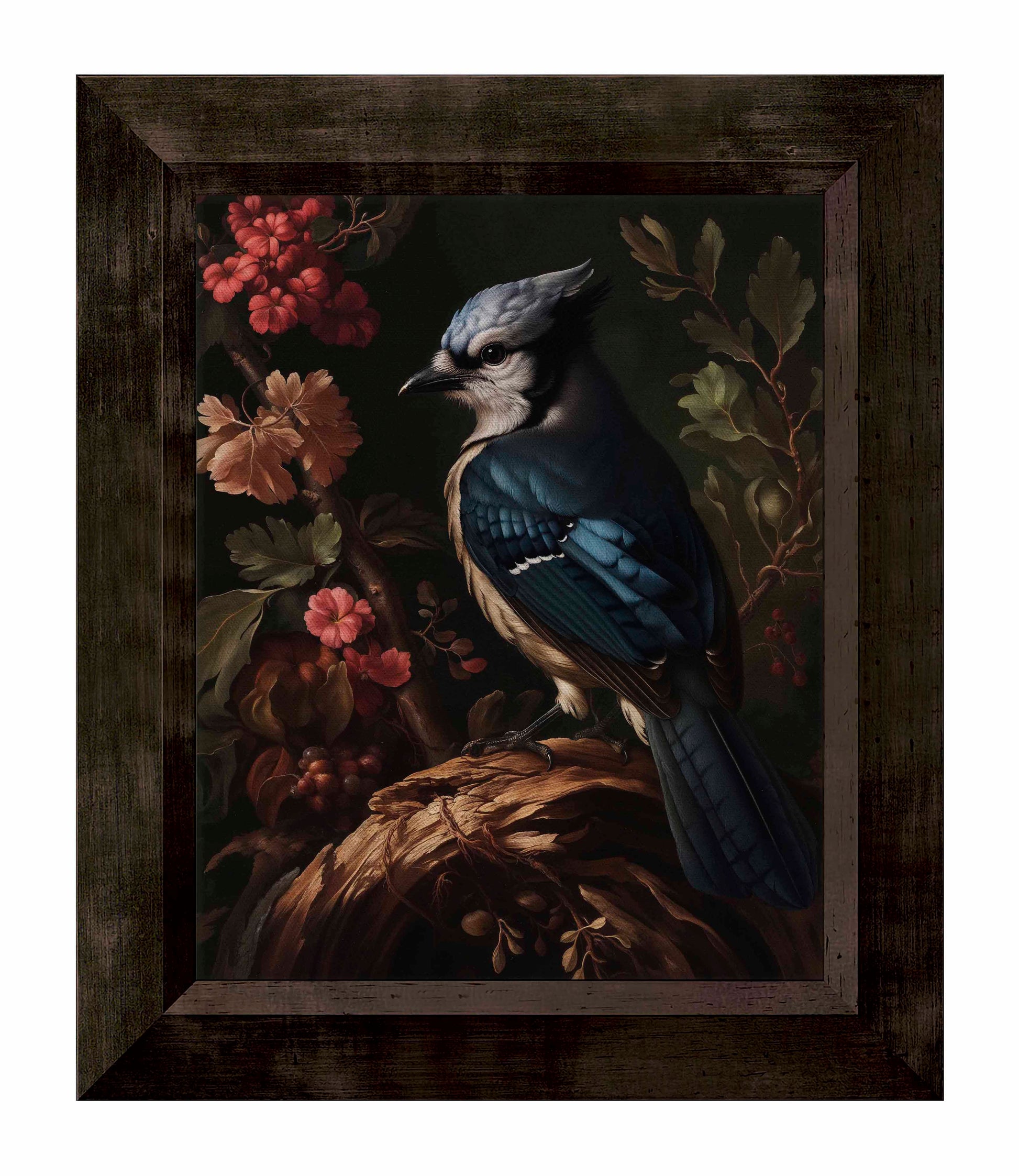 In Elegance in Bloom - Blue Jay Amongst Flora, the artist captures the serene beauty and delicate balance of nature. This painting features a striking Blue Jay, perched gracefully amidst a rich tapestry of flowers and foliage, reminiscent of the Dutch Floral still-life tradition. The Blue Jay's vibrant blue plumage stands in stark contrast to the warm, earthy tones of the surrounding flora, creating a captivating visual harmony. The meticulous detailing of each petal and feather, combined with the soft play of light and shadow, brings an almost three-dimensional quality to the work. This piece not only celebrates the intricate beauty of the natural world but also evokes a sense of timeless elegance and tranquility. Ideal for collectors and nature enthusiasts alike, Elegance in Bloom: Blue Jay Amongst Flora is a testament to the enduring allure of classic floral art.