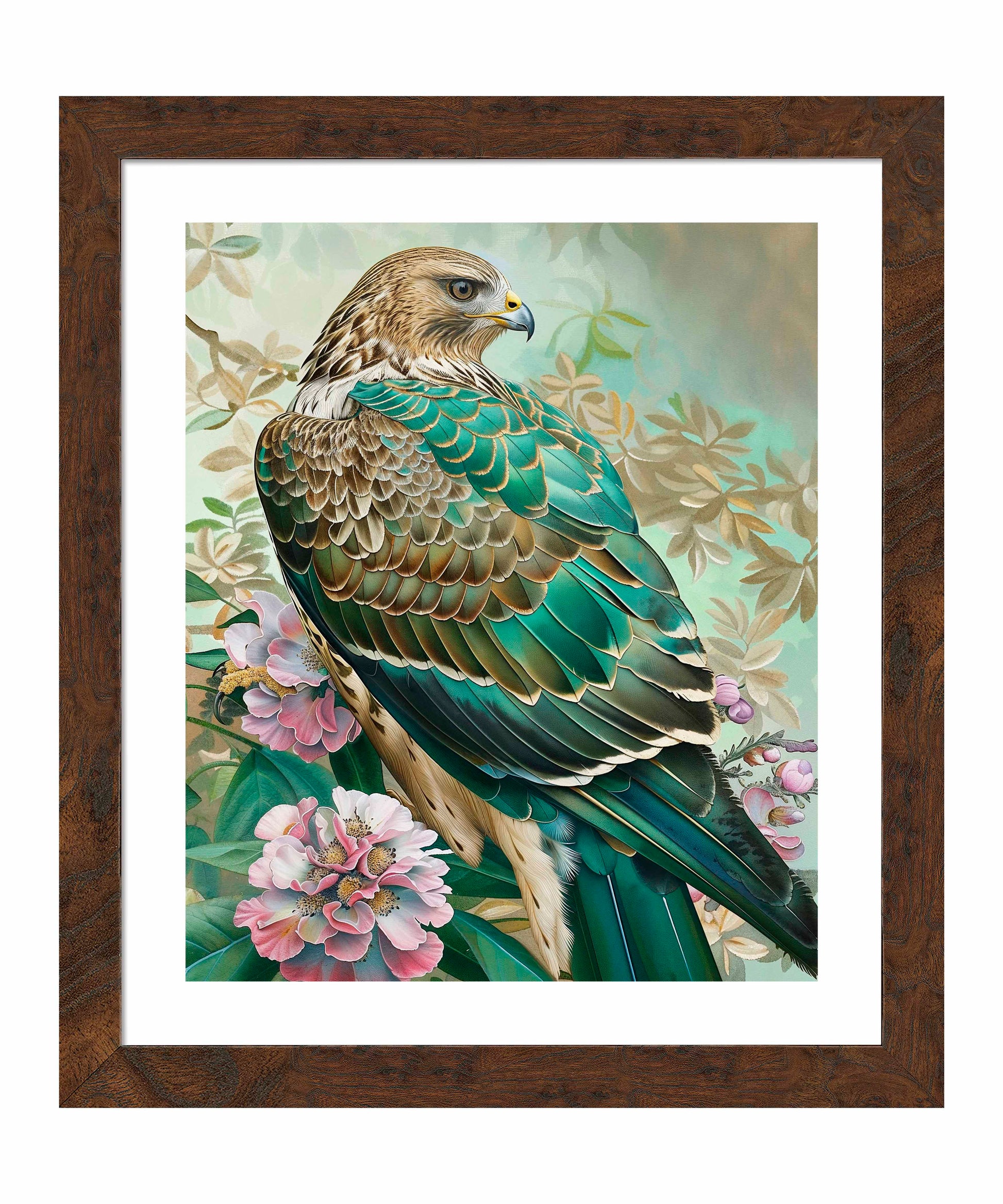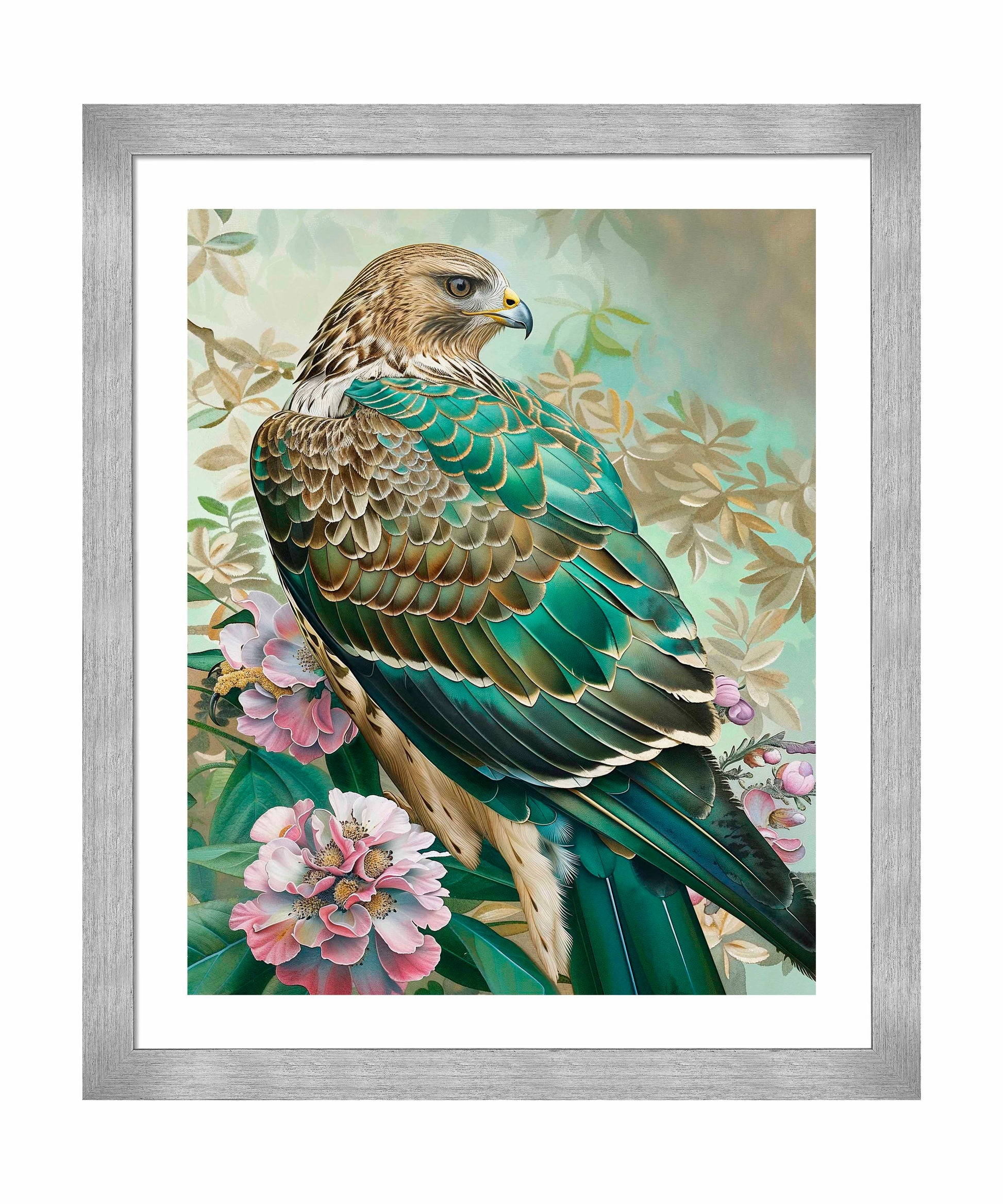 Emerald Majesty - Hawk Amidst Blossoms - Art Prints