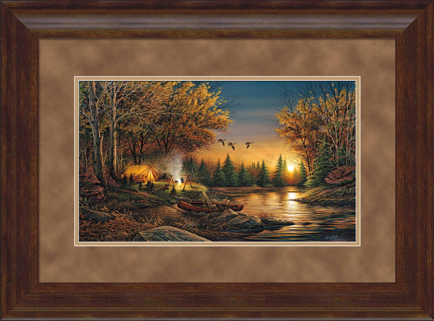 “In every outdoor person's imagination is the ideal campsite, far from the tensions of modern civilization. In this quiet place the healing powers of nature slowly emerge and, for a few precious hours or days, all is right with the world. These campers have just arrived and rest in their tent. They are unaware of the Canada geese passing overhead on the way to their own resting place. Tomorrow our campers will, no doubt, be in touch with the magic of their surroundings.”