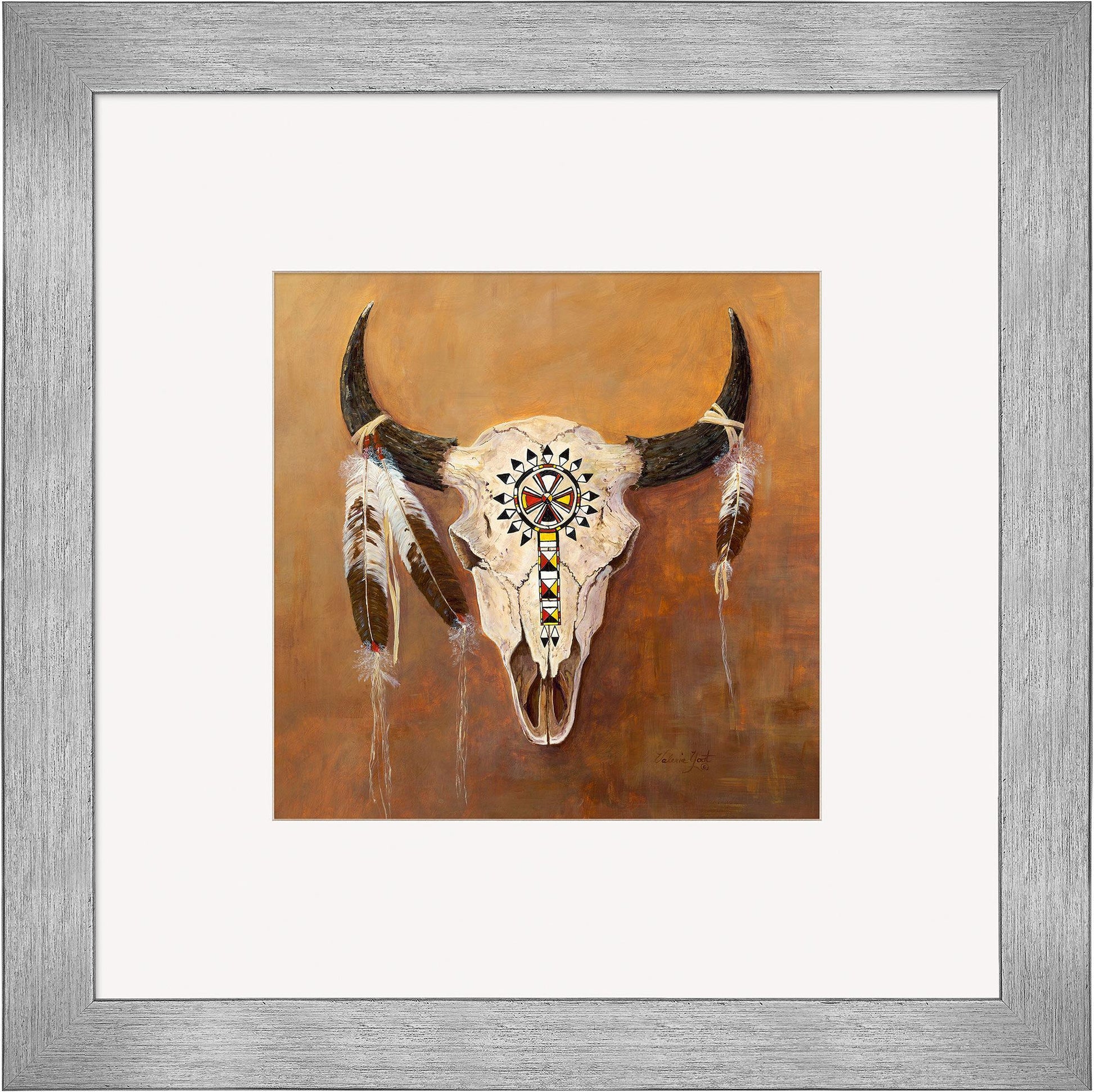 "Eagle feather symbols and eagle feathers bless this buffalo and his life. Every part of the buffalo was used by the Native Americans. Buffalo meant everything to the Native Americans. Food, shelter, bedding, clothes and utensils."—Valeria Yost