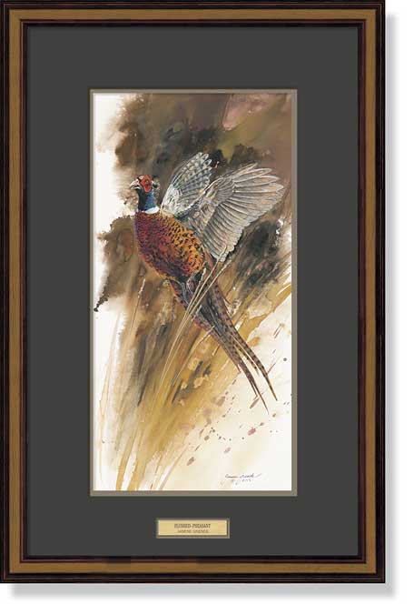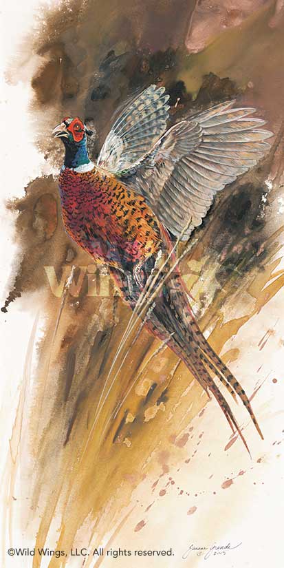 The flurry of color exploding in flight is what inspired this painting of a ring necked pheasant.