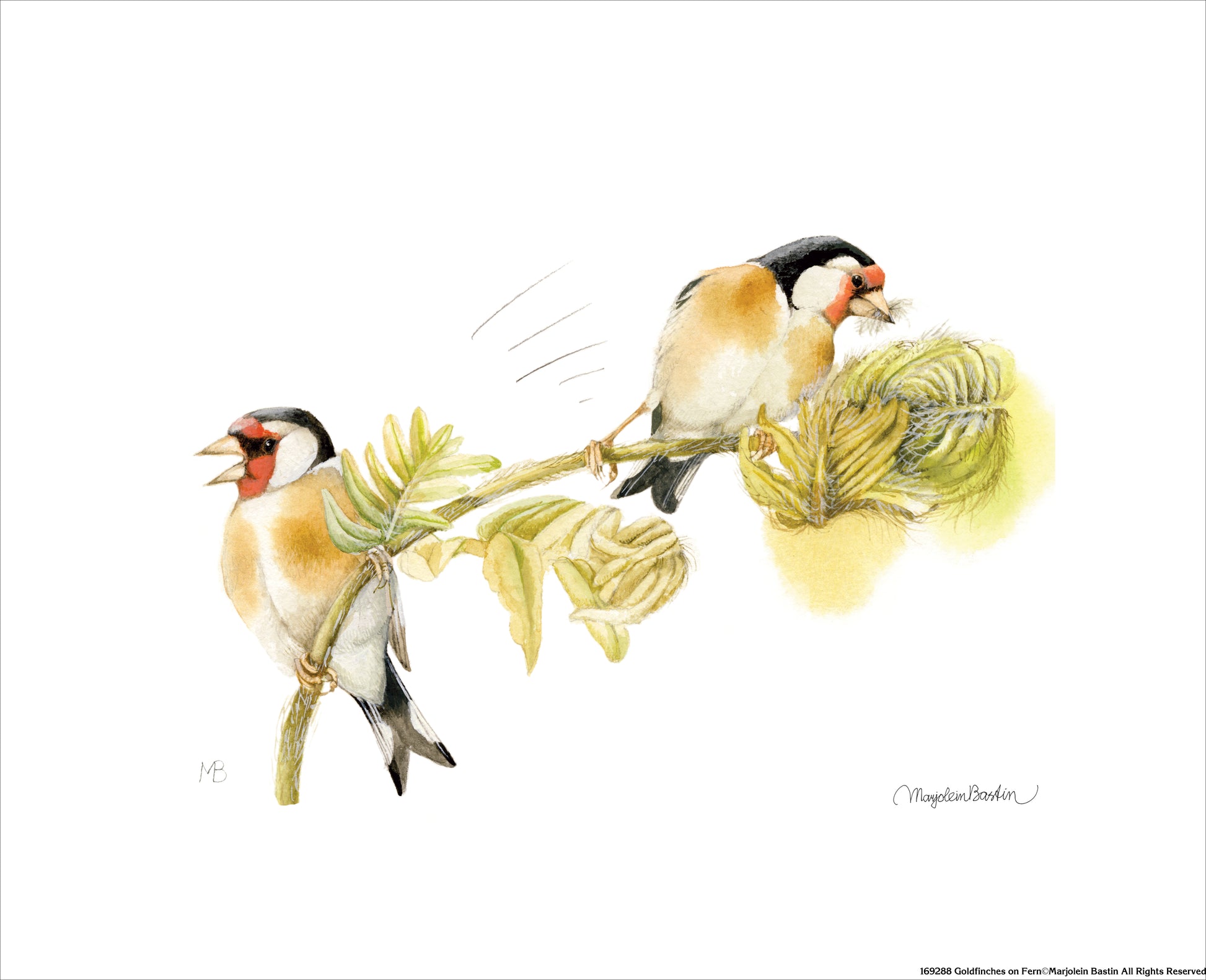 The European goldfinch builds a sturdy and compact nest and lines the inside with the softest materials they can find: hair, down feathers or just some fluff. For a few days I have been observing a pair of European goldfinches on top of the slowly uncurling branches of the royal ferns, I couldn’t figure out what they were doing. They kept flying back and forth between the ferns and the orchard, where they are building their nest. But as soon as I stepped outside to take a closer look at the royal ferns I knew exactly why! The young shoots are covered in a thin layer of silky fibers. That will be a very soft nest, I wonder how they figured out to use this material?