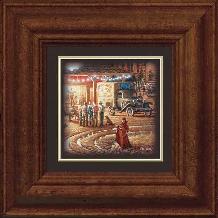 It was a time for folks from miles around to gather and socialize. Men talked about crops, prices, and politics. Women discussed their kitchen kingdoms, home-making, and child-rearing. The kids, well they just worked off excess energy and played hard. In the Harvest Moon Ball, Terry Redlin captures this rural American ritual with all its color, excitement, and bustling activity. The rich tones of indigo, gold, and brown are guaranteed to instill a calming tone in any bedroom or living room.