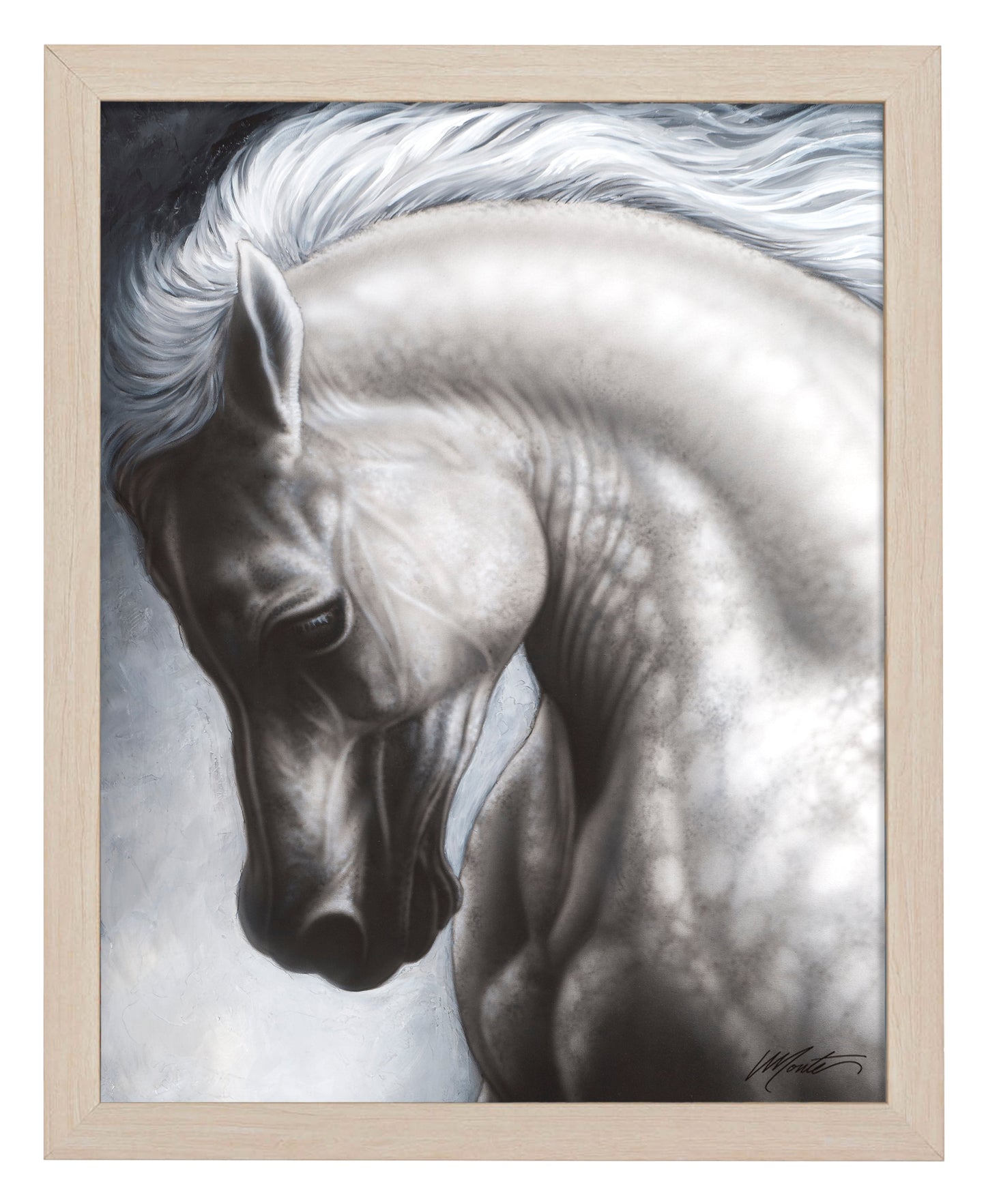 "Majesty" is a captivating oil painting by artist Monte M. Moore that beautifully captures the grace and elegance of a white Arabian horse, exuding a sense of regality and serenity.About the Product