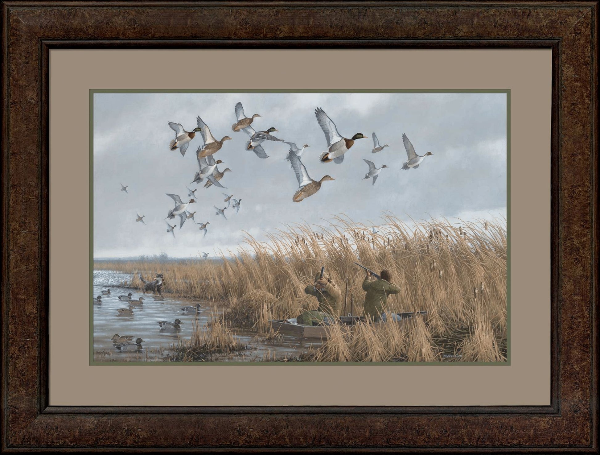 This is a scene reminescent of my youth. A few decoys a homemade duck boat and a good dog were all that we needed to have a good time.