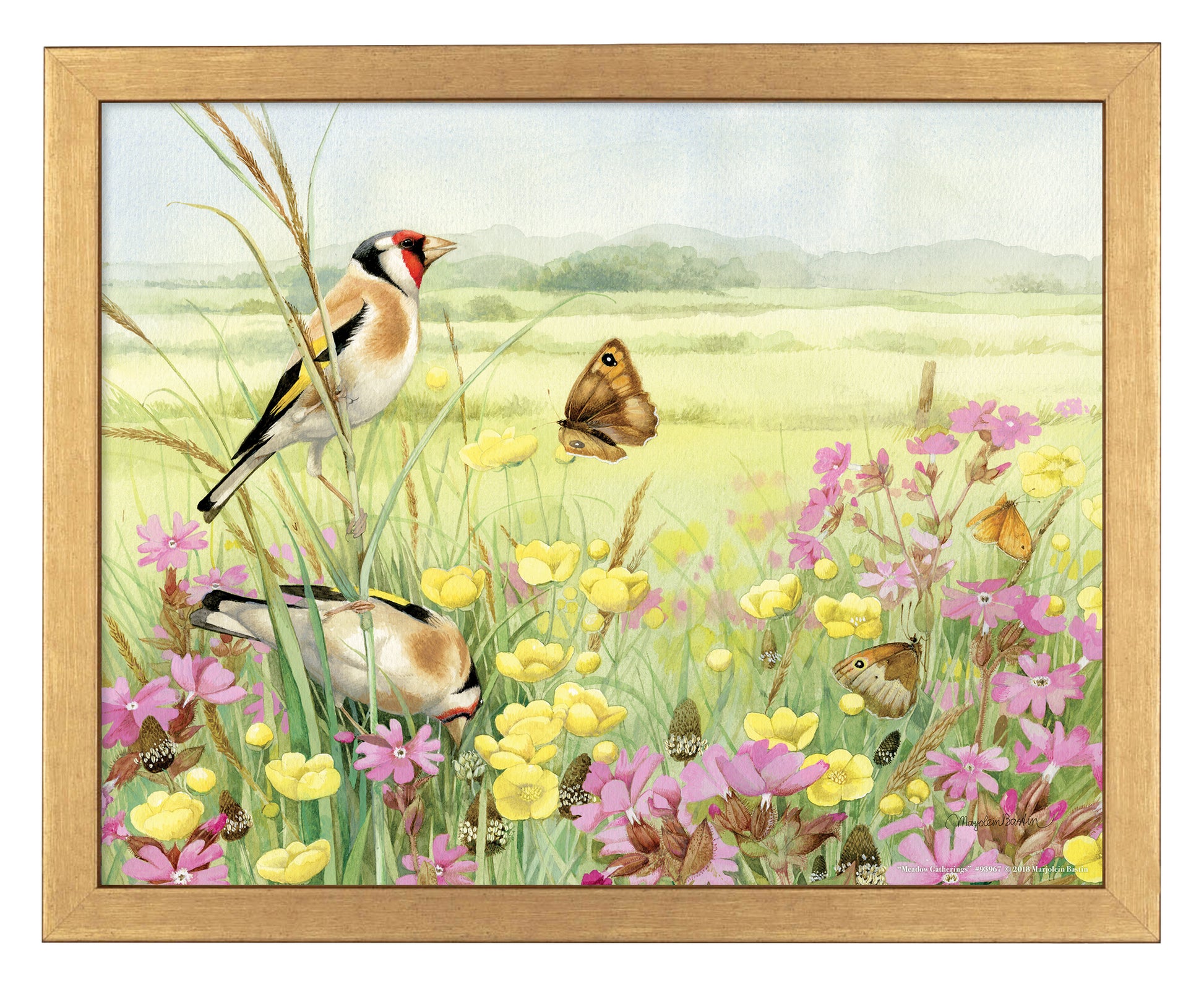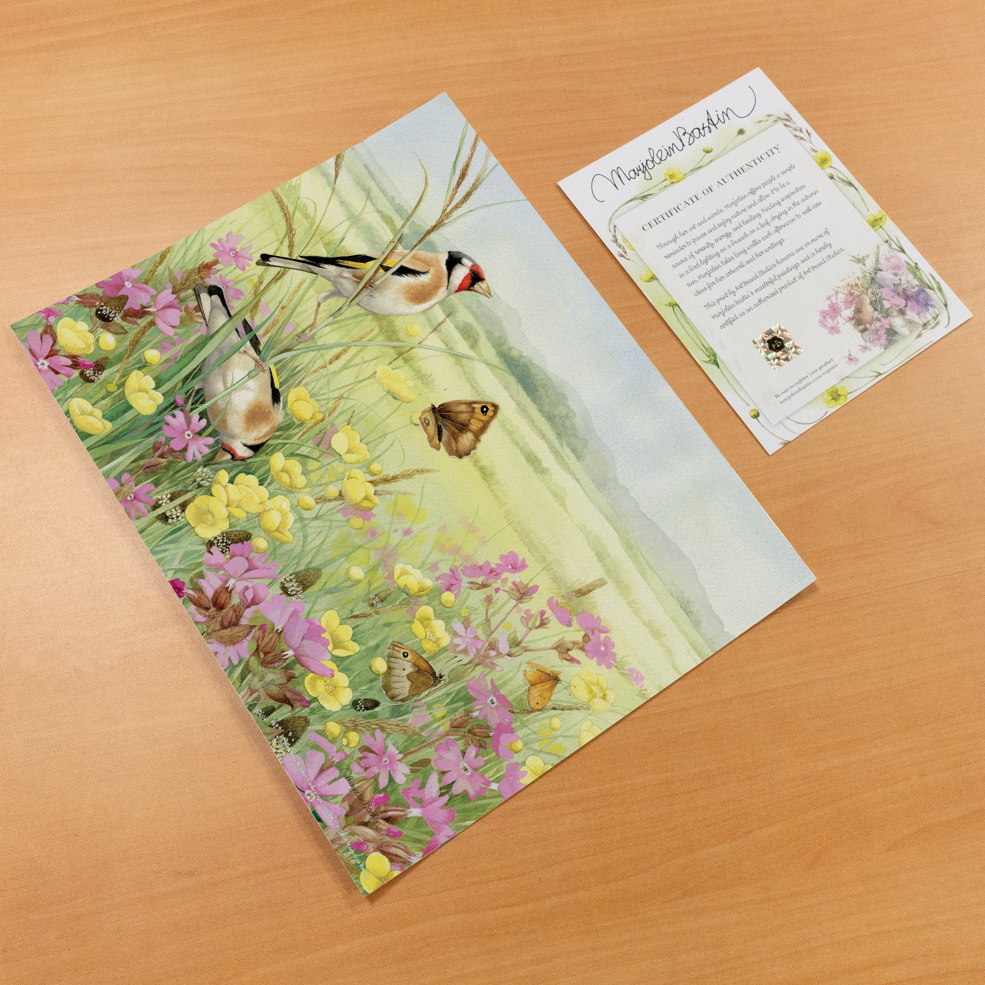 It continues to Amaze me how nature creates such incredible colors. Just look at this meadow, yellow buttercup combined with pink flowers of the ragged robin plant. To top it off, a pair of European goldfinches visits the meadow looking for seeds. To make sure I will never forget this moment I had to pick some flowers for my desk.