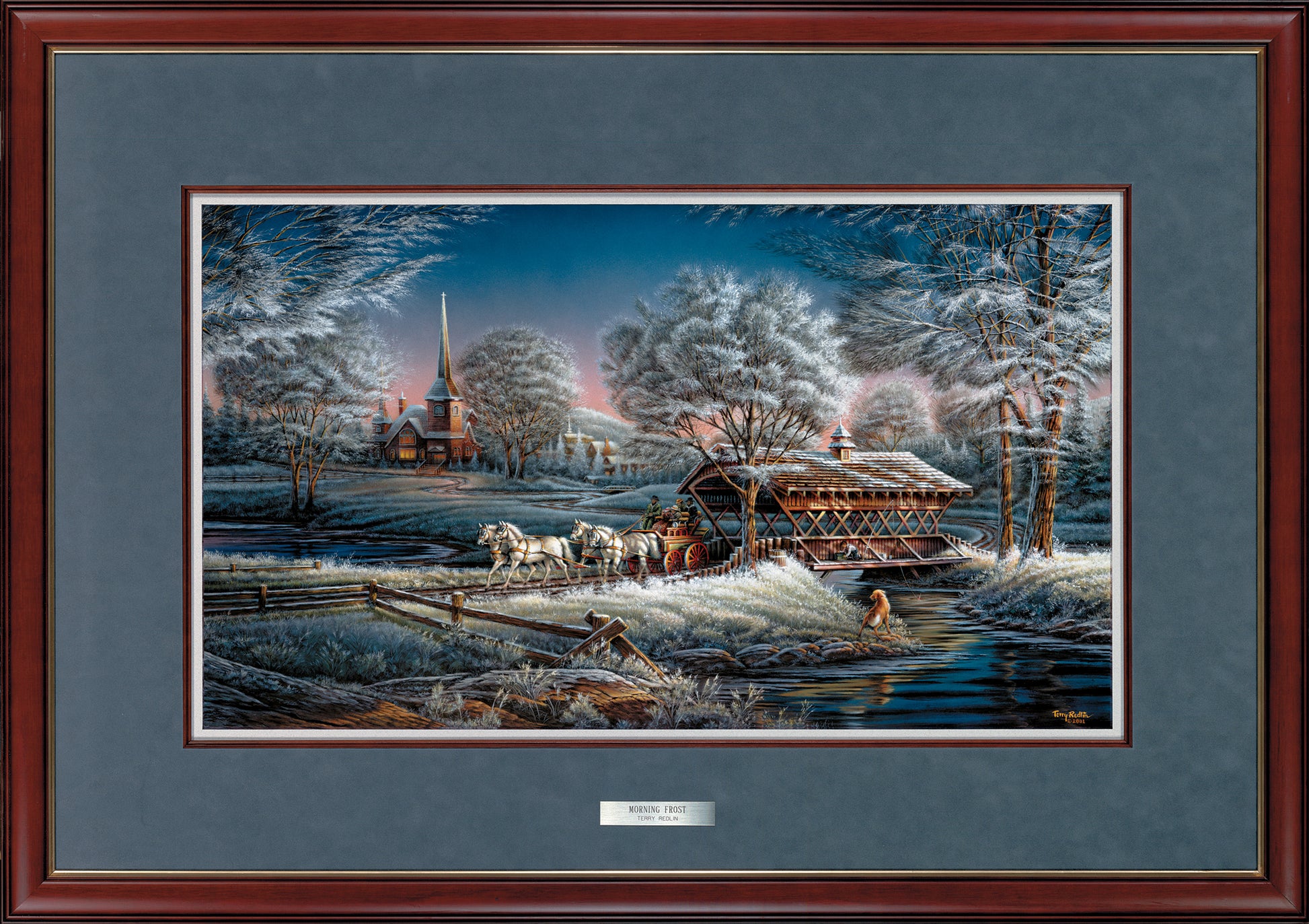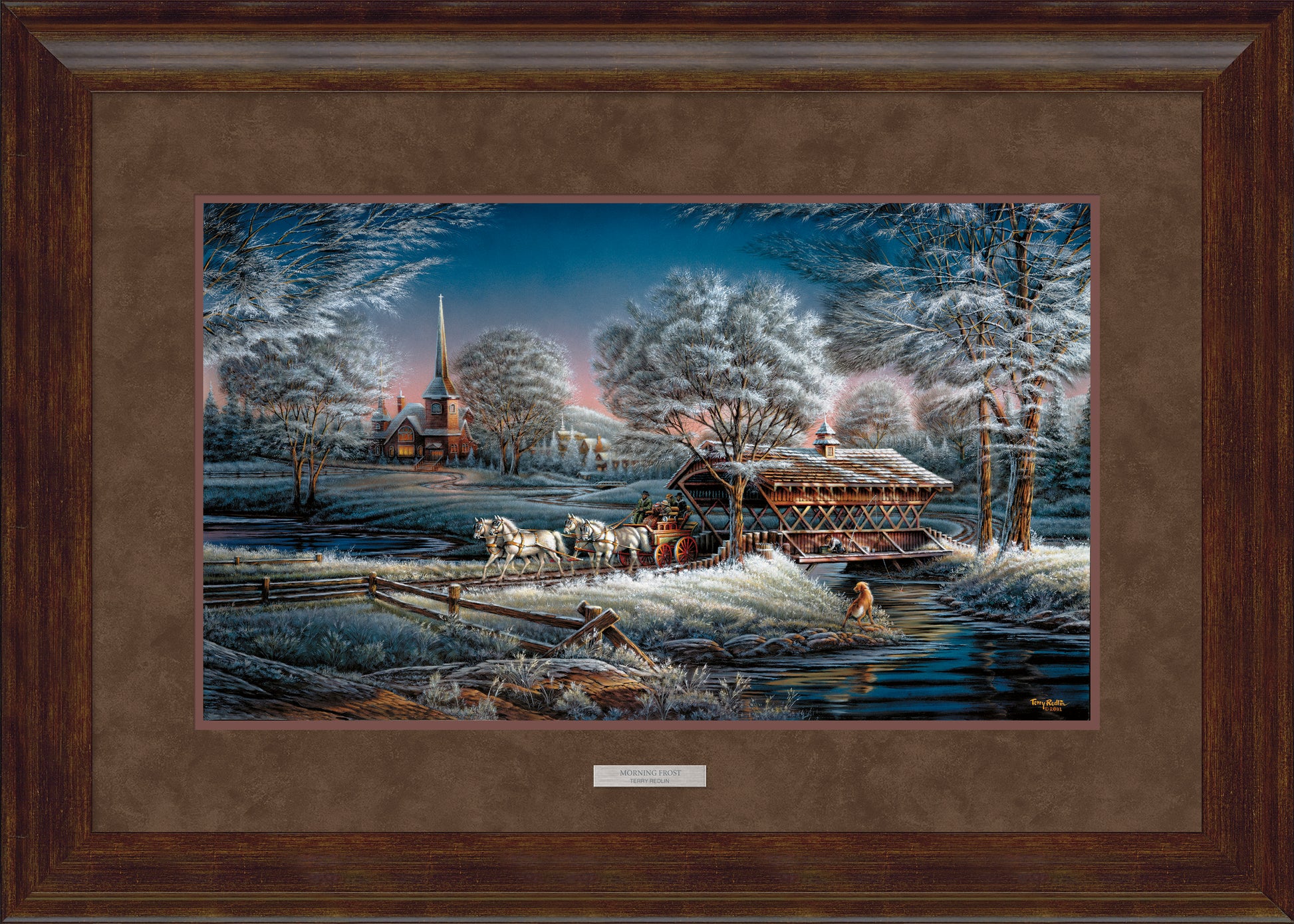 Elite open edition art print made from the original oil painting. Image size, 14" x 24". Choose from two moulding options (walnut or oak) and two matting options (regular or deluxe suede mats). Also available; open edition Encore canvas print. Image size, 14" x 24". Choose from two framing options.