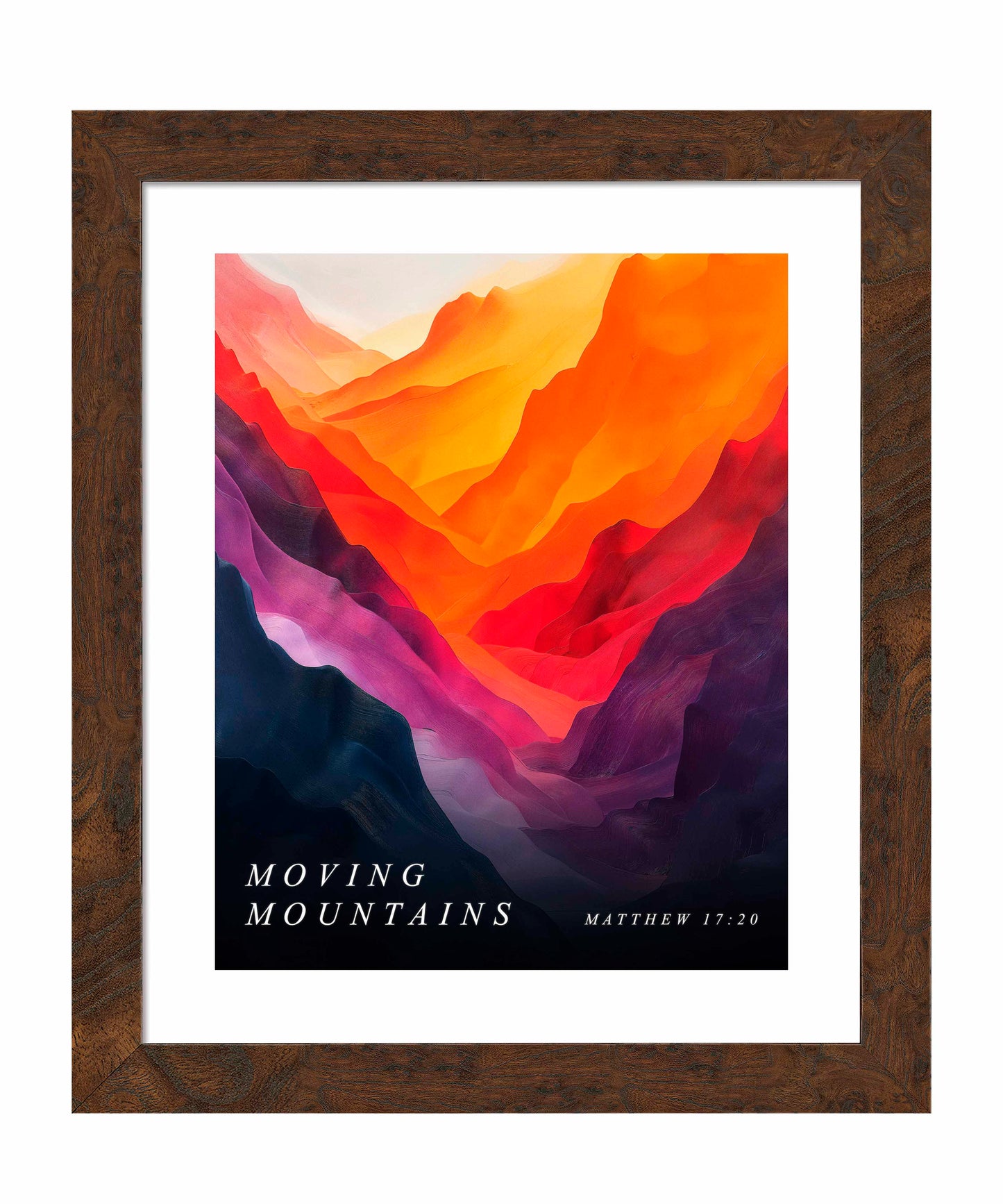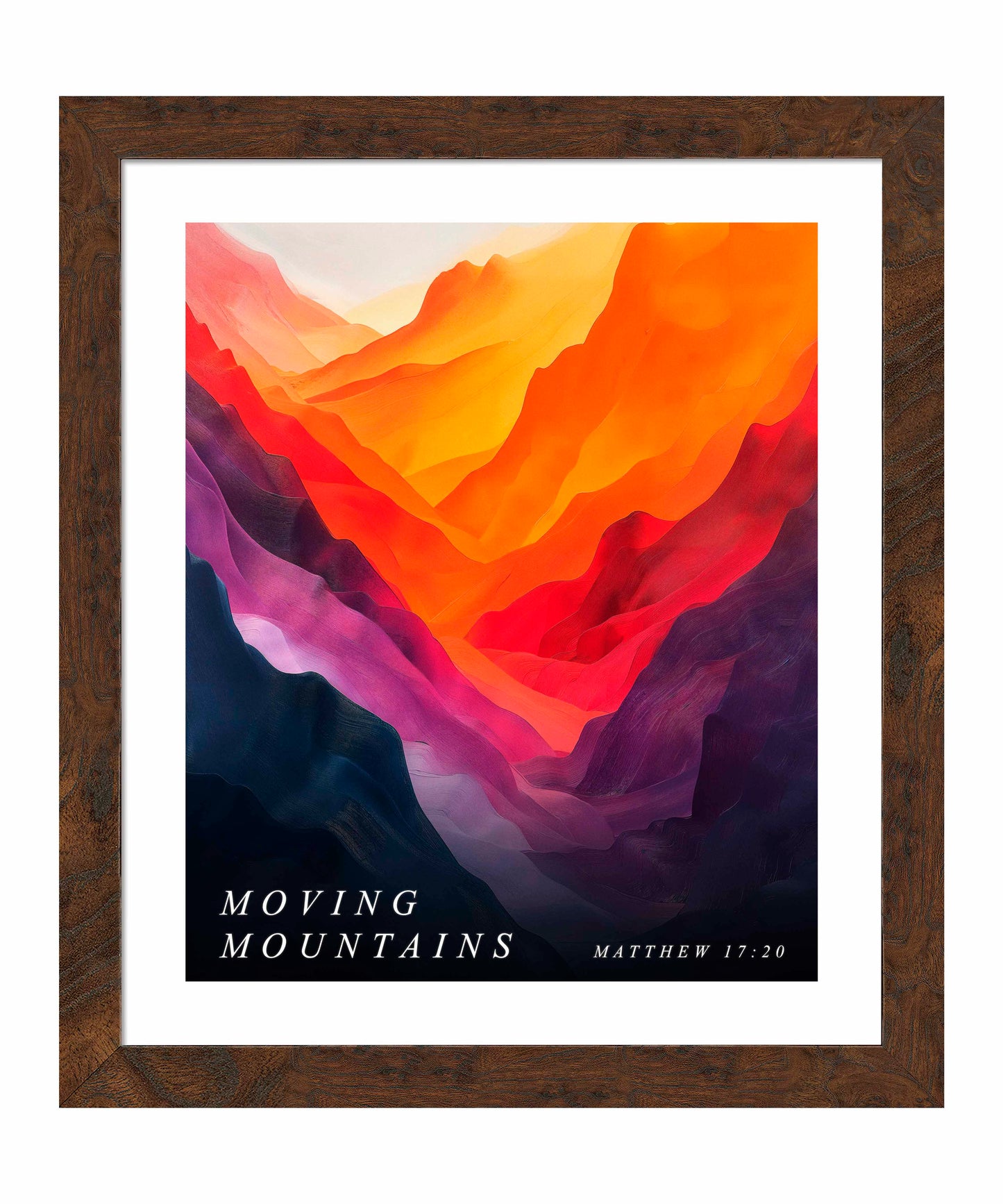 Moving Mountains is an artistic expression of faith’s strength, illustrating how belief and perseverance can overcome even the most imposing barriers. The vivid colors and flowing forms work together to inspire the viewer to embrace hope, faith, and the possibility of miraculous change, resonating with the biblical promise that with faith, nothing is impossible.
