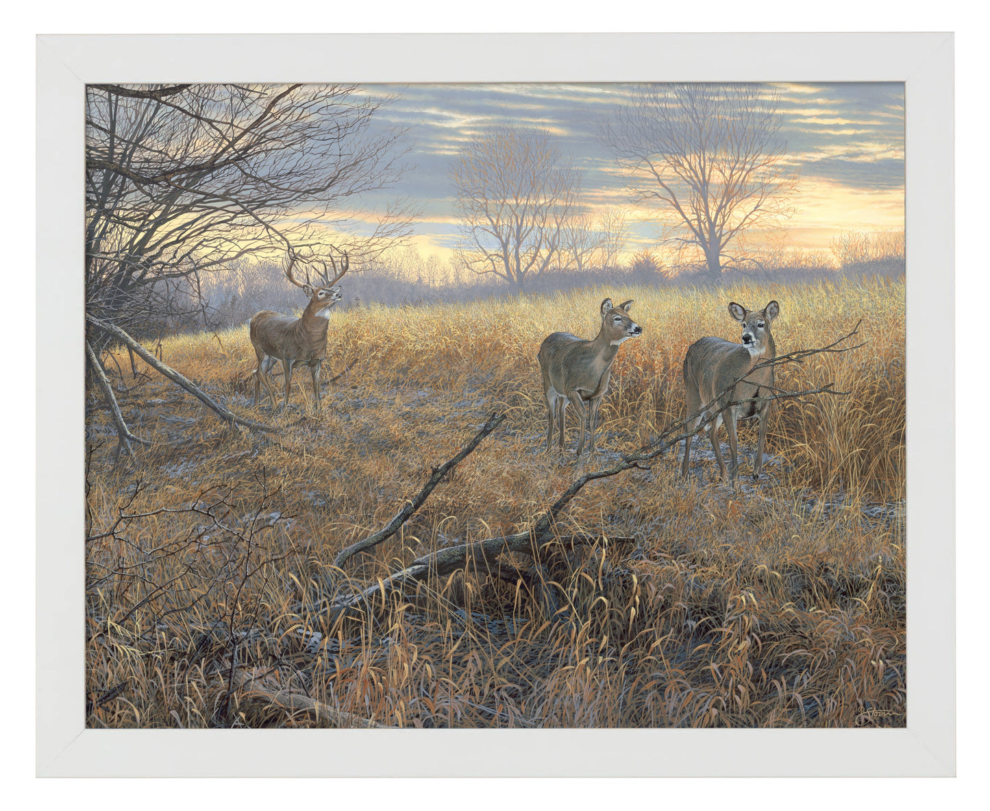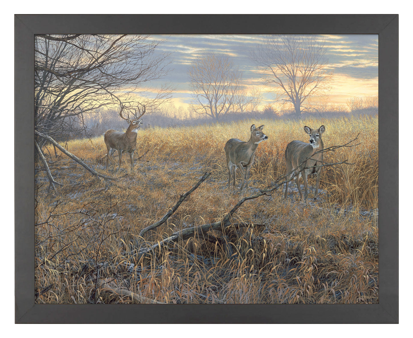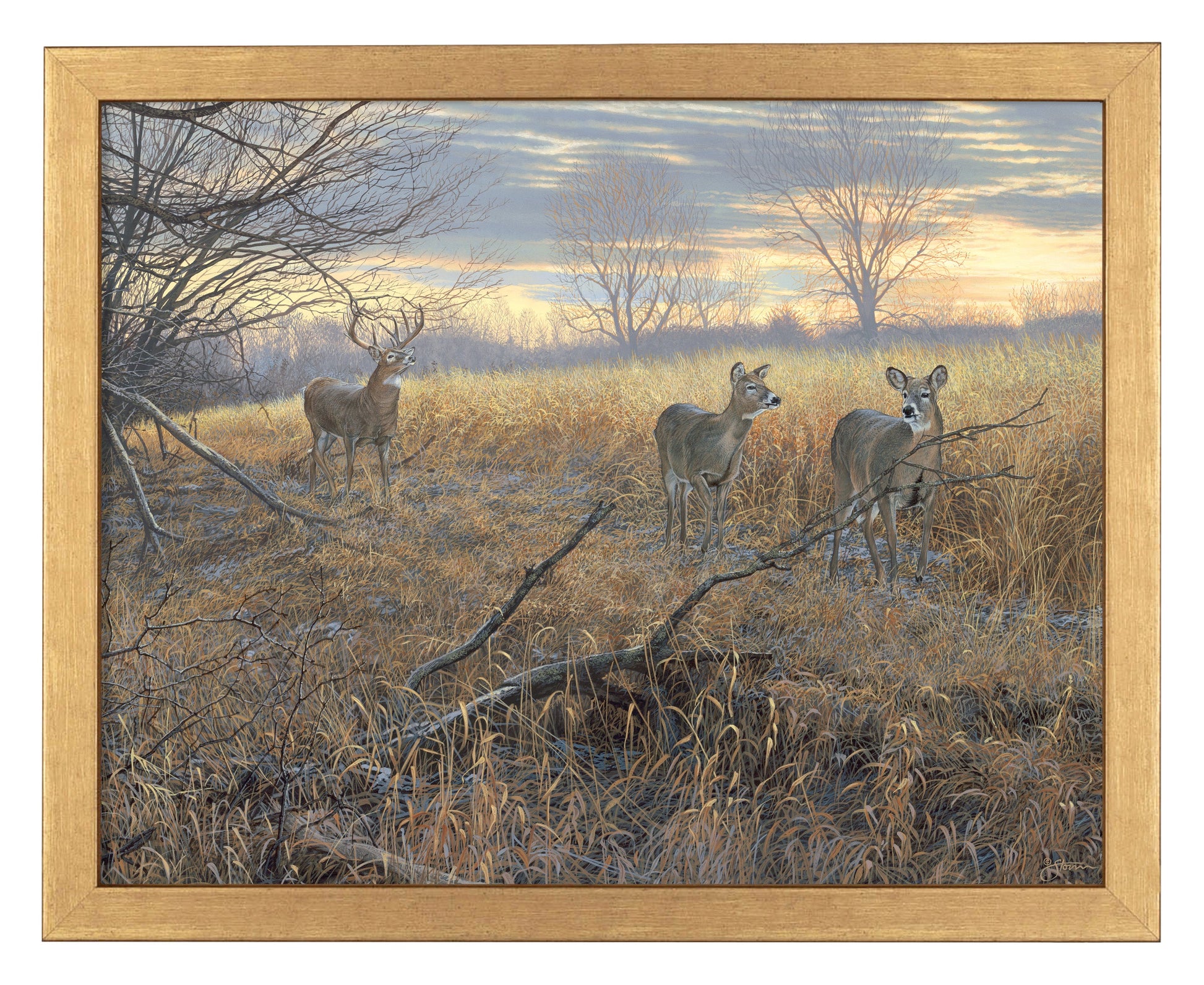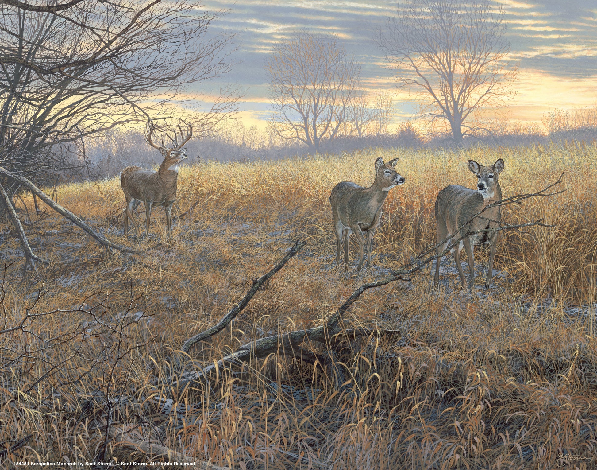 I wanted to capture the essence of an early morning in the wilderness when the world is still quiet and peaceful. The painting features a dominant whitetail buck checking his territory, or scrapeline, with two other whitetail deer accompanying him. The majestic buck is standing tall and proud with his antlers in full display. His powerful presence is felt as he surveys his surroundings, ready to protect his territory from any potential threats. I wanted to convey the sense of strength and dominance that this animal exudes, as well as his innate grace and beauty. I aimed to convey the feeling of being in the presence of these magnificent creatures, as if the viewer is standing right there with them in the early morning light. I hope that viewers will feel a sense of awe and respect for the power and grace of the whitetail deer and be inspired to appreciate and protect our natural world.About the Product