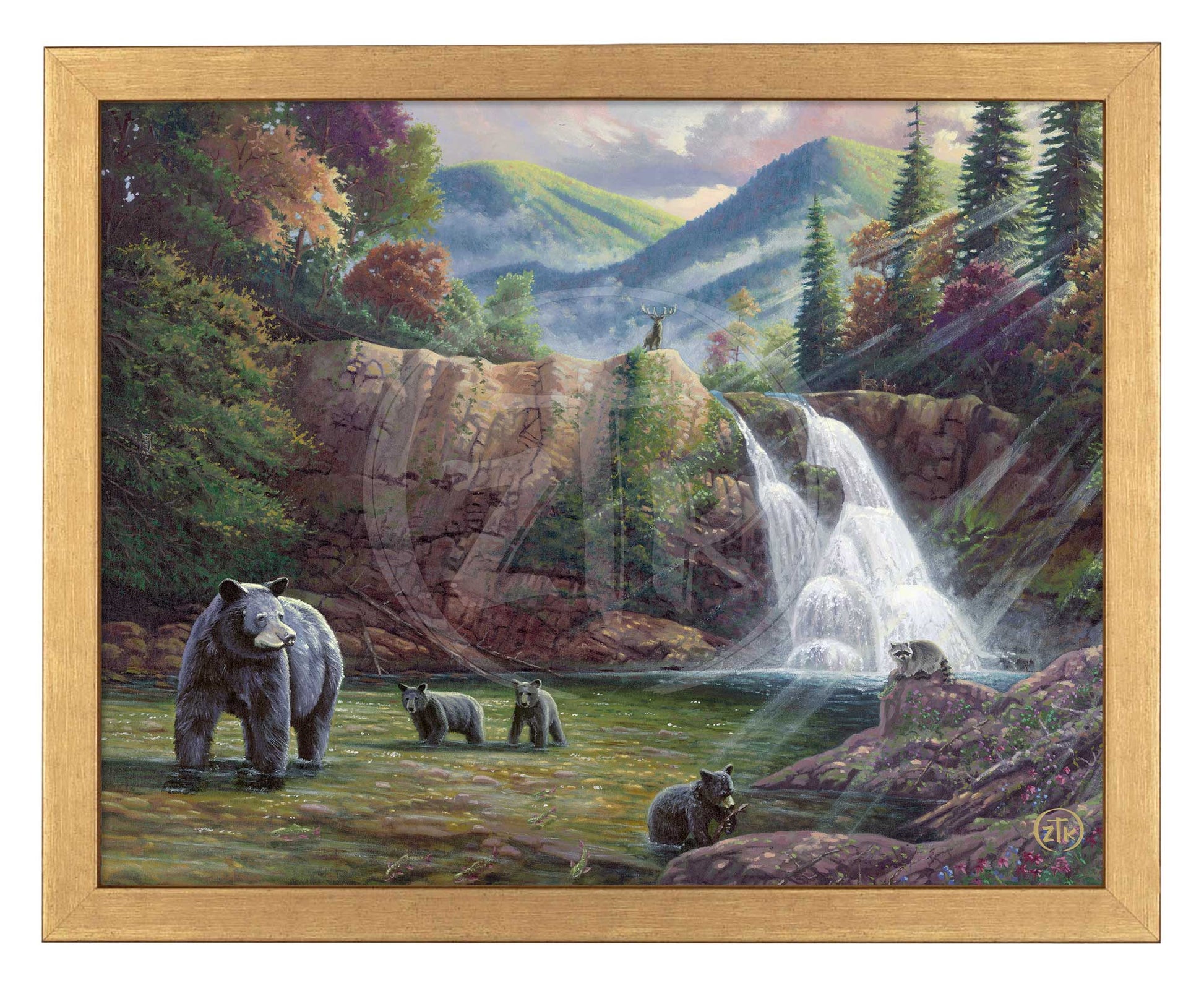 In Spirit of the Smokies, I once again take time to explore Americas Wildlands and pay homage this nations majestic parks. It is my second effort in this series. Situated along the border of Tennessee and North Carolina, the Appalachian and Blue Ridge Mountains serve as backdrop to my selected mountain scene. As Abrams Falls splashes behind, a mother black bear and her three cubs forage the flowing stream for food and fun. A mountain raccoon takes a moment to watch the furry family while it holds on to its dinner in the form of a brook trout. Standing above it all, a North American elk looks down on its fellow woodland denizens as it is silhouetted against the shifting mists and striking foliage of this ancient forest habitat. I have visited the Smoky Mountains on many occasions and I am always struck in wonder at the beauty of the area. As you hike these hills, you will see subtleties of light and color that can truly inspire artistic vision. It is also a place rich in a unique culture and an unabashed appreciation of the simple life so far removed from the chaos of the city. I hope you all can find some time to join me as I take my own moment to reflect and recenter myself in the Smokies and this sun drenched hallow. And, as always, I want to thank you all for sharing my adventure in art.
