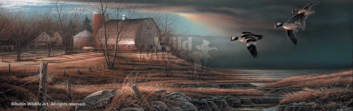 Part of the Horizons Collection of horizontal, open edition prints, excerpted from previous Redlin releases. Image size, 8-1/2" x 27". Choose from five different framing options.