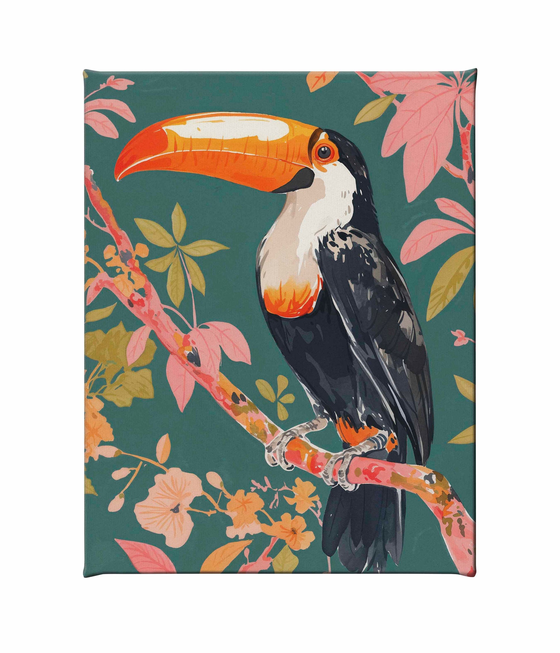 Tropical Splendor - Toucan in Blooming Canopy is an ideal piece for those who appreciate the exotic charm and natural beauty of tropical environments. Perfect for adding a burst of color and a touch of the wild to any space, this painting invites viewers to immerse themselves in the lush, vibrant world of the tropics, celebrating the harmony and splendor of nature.