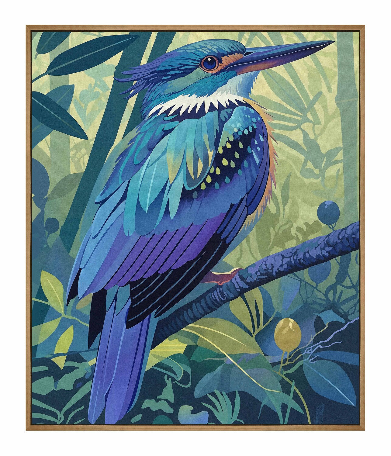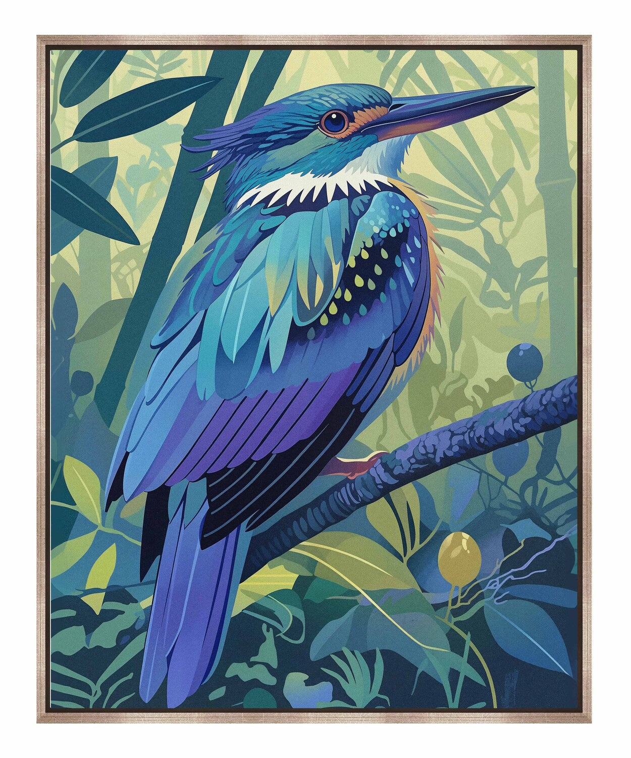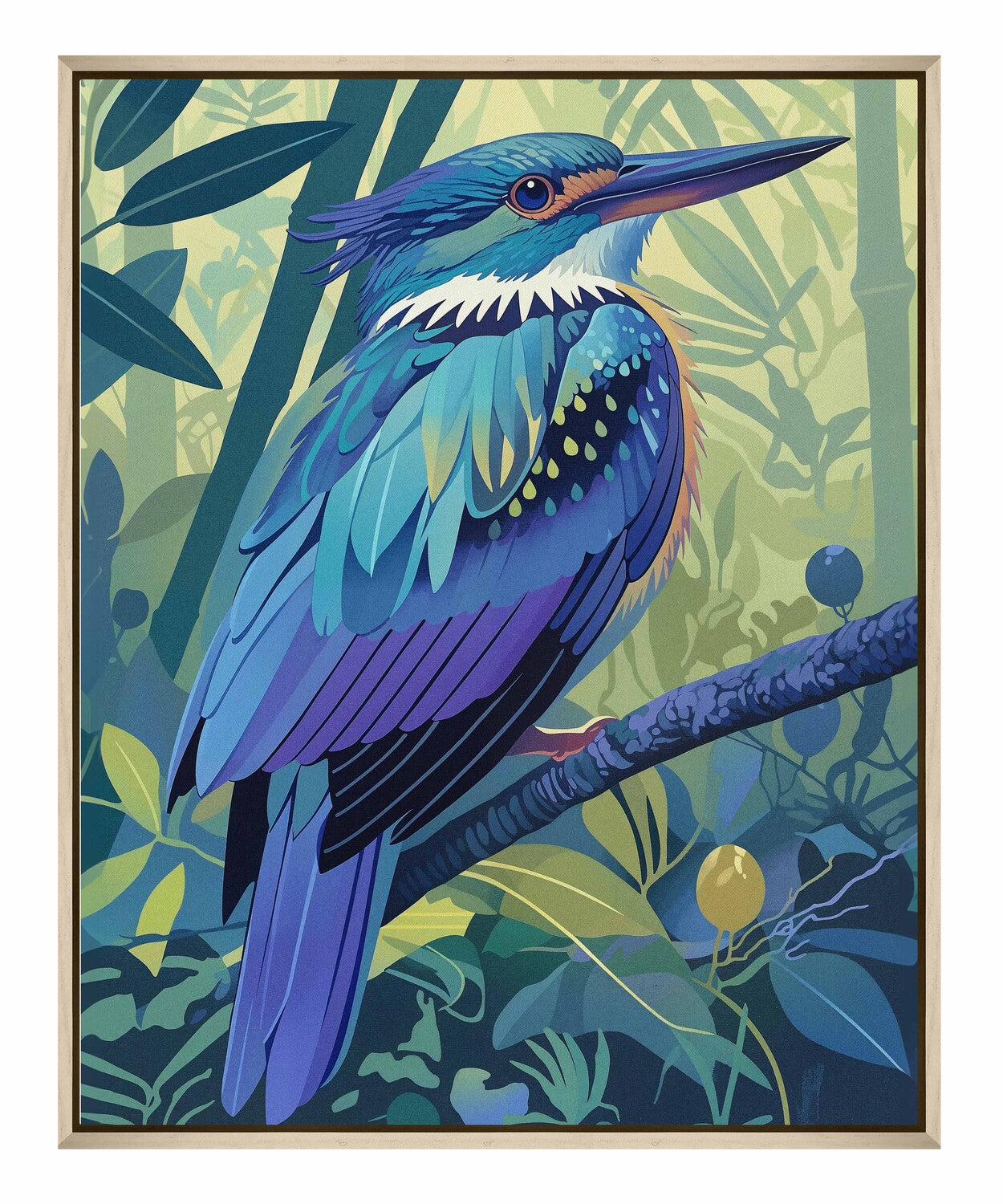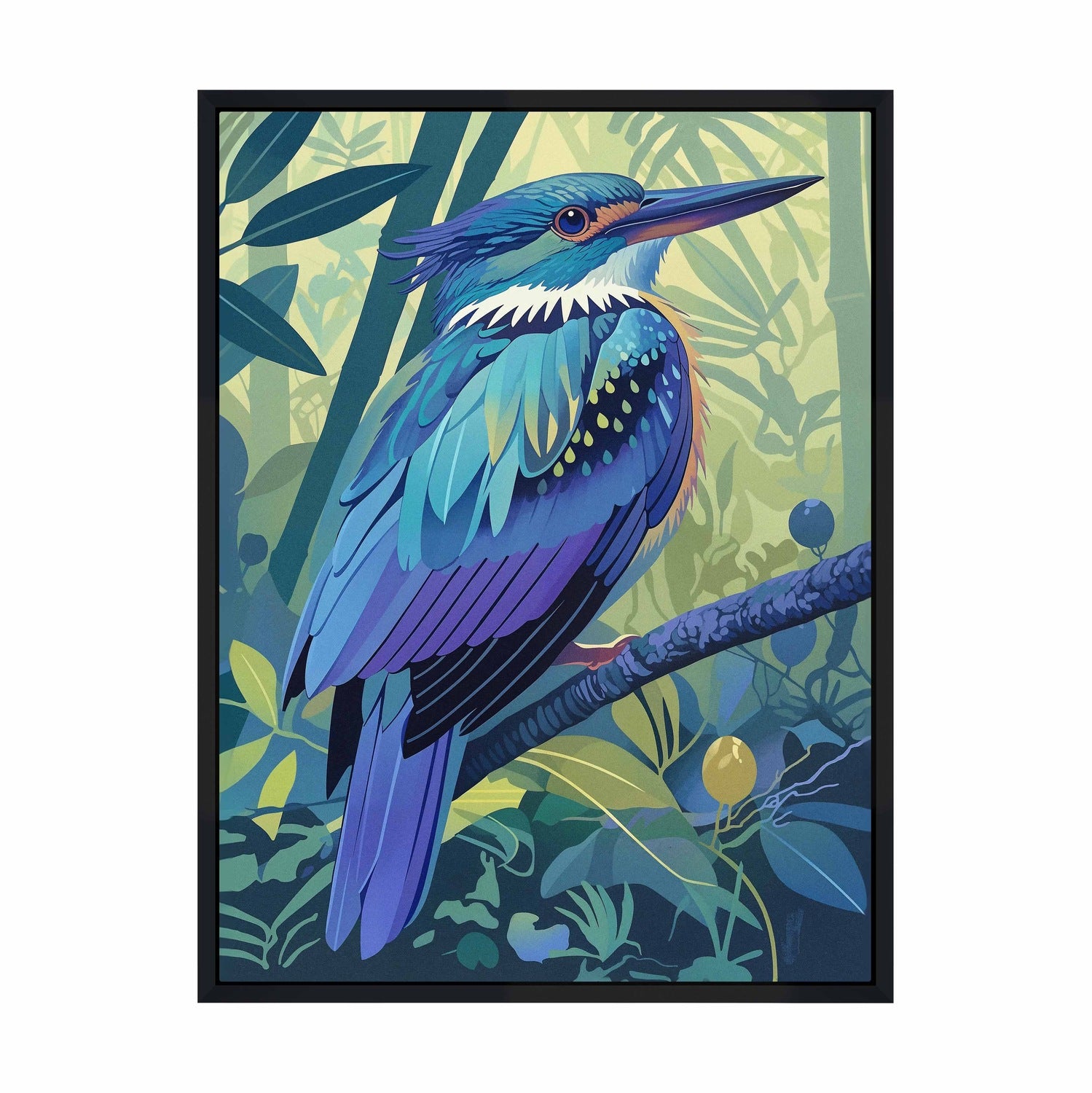 Tropical Splendor - Kingfisher in Lush Jungle is a vibrant and enchanting piece from the Limelight Collection, capturing the dynamic beauty and vivid colors that characterize this series. This painting features a stunning kingfisher perched on a branch, surrounded by the dense, lush foliage of a tropical jungle. The kingfisher's plumage, a brilliant mix of blues, greens, and hints of purple, is rendered with exquisite detail, highlighting the bird's striking appearance and poised elegance.