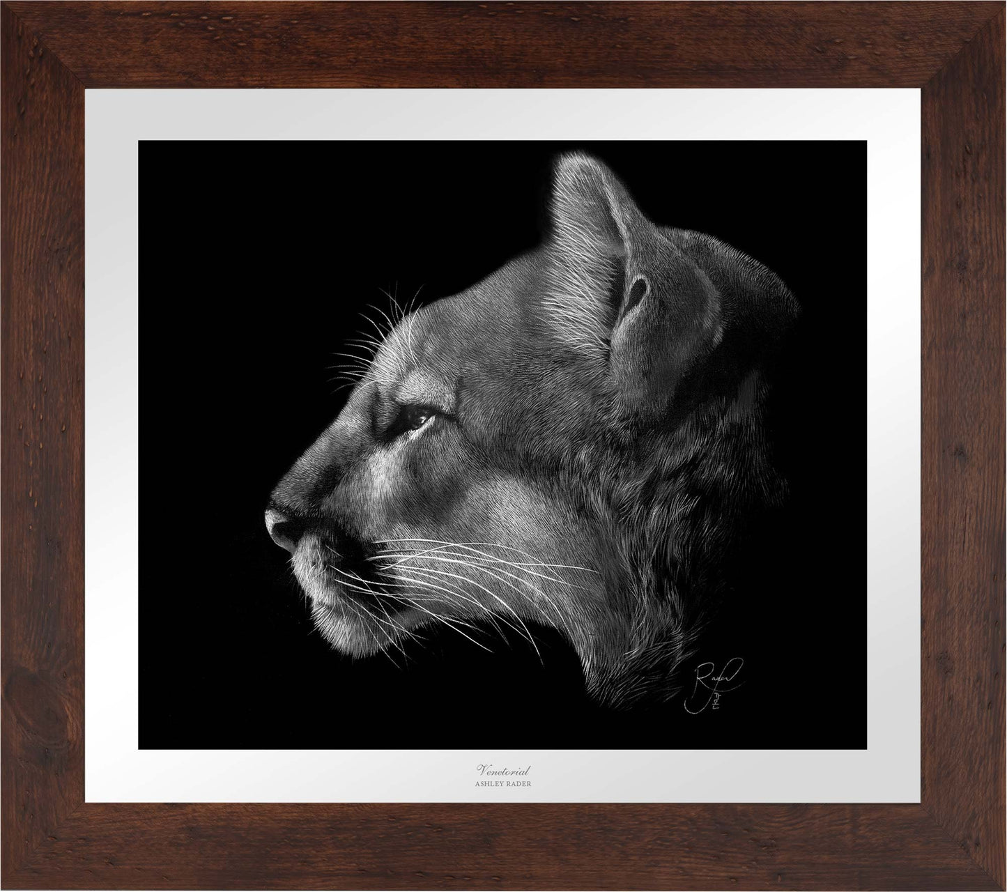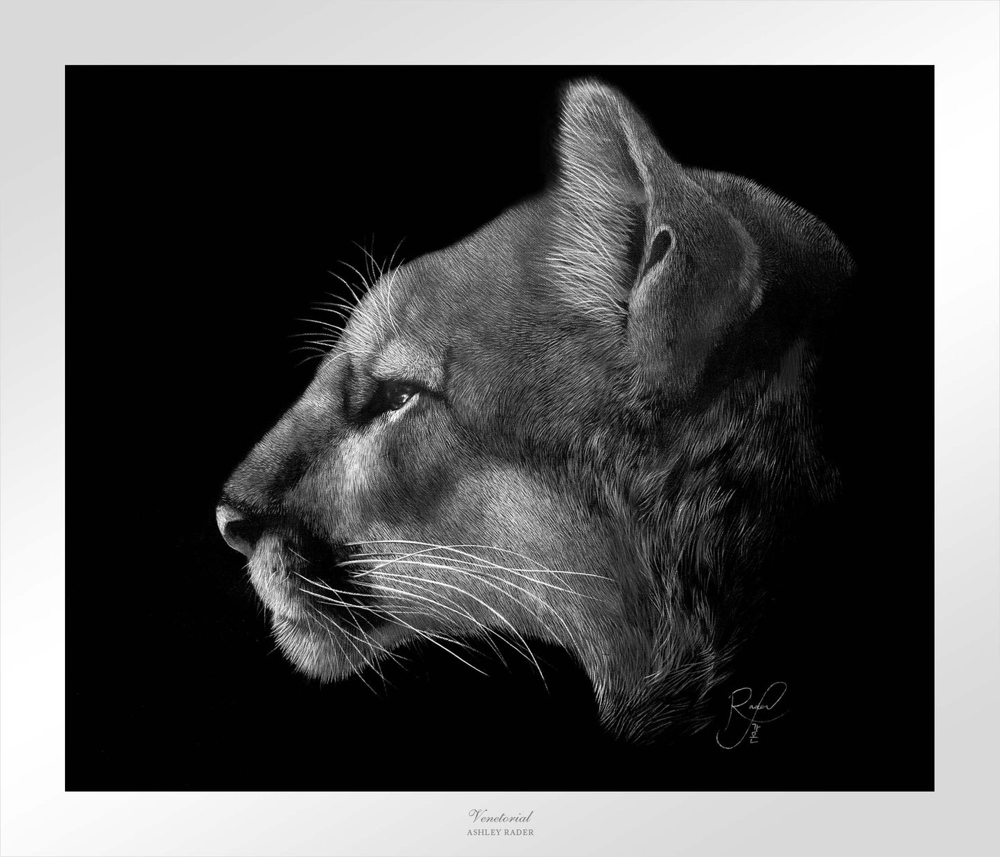 As the artist behind "Venetorial," I am proud to present this remarkable and captivating black and white piece depicting a powerful and graceful cougar. I meticulously created the piece, utilizing the Realistic/Realism technique to create a timeless and sophisticated effect that exudes both mystery and elegance. The intricate details of the mountain lion's fur and profile, combined with the tactile quality, make it feel as though the cougar could leap off the canvas at any moment. This piece serves as a powerful reminder of the importance of preserving and protecting these magnificent creatures.About the Product